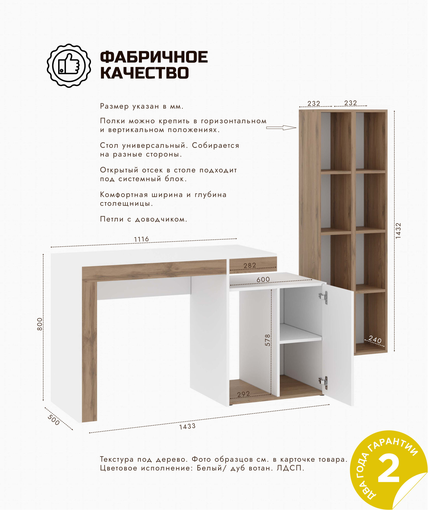 Компьютерный стол OXFORD К1 Белый/Дуб вотан интересное: