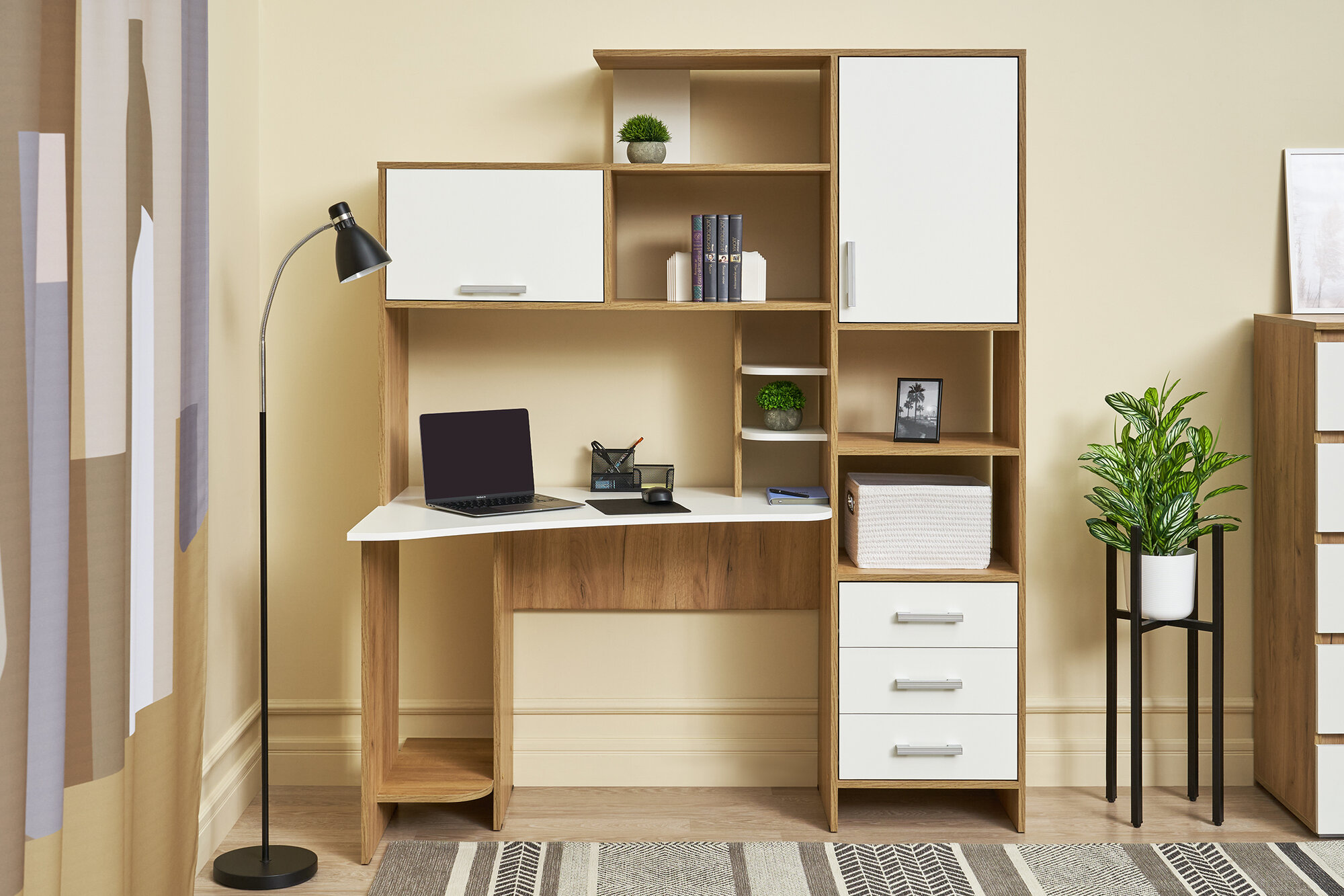 Стол компьютерный Нонтон №6 белый / дуб крафт золото 150x81.4x182 см интересное: