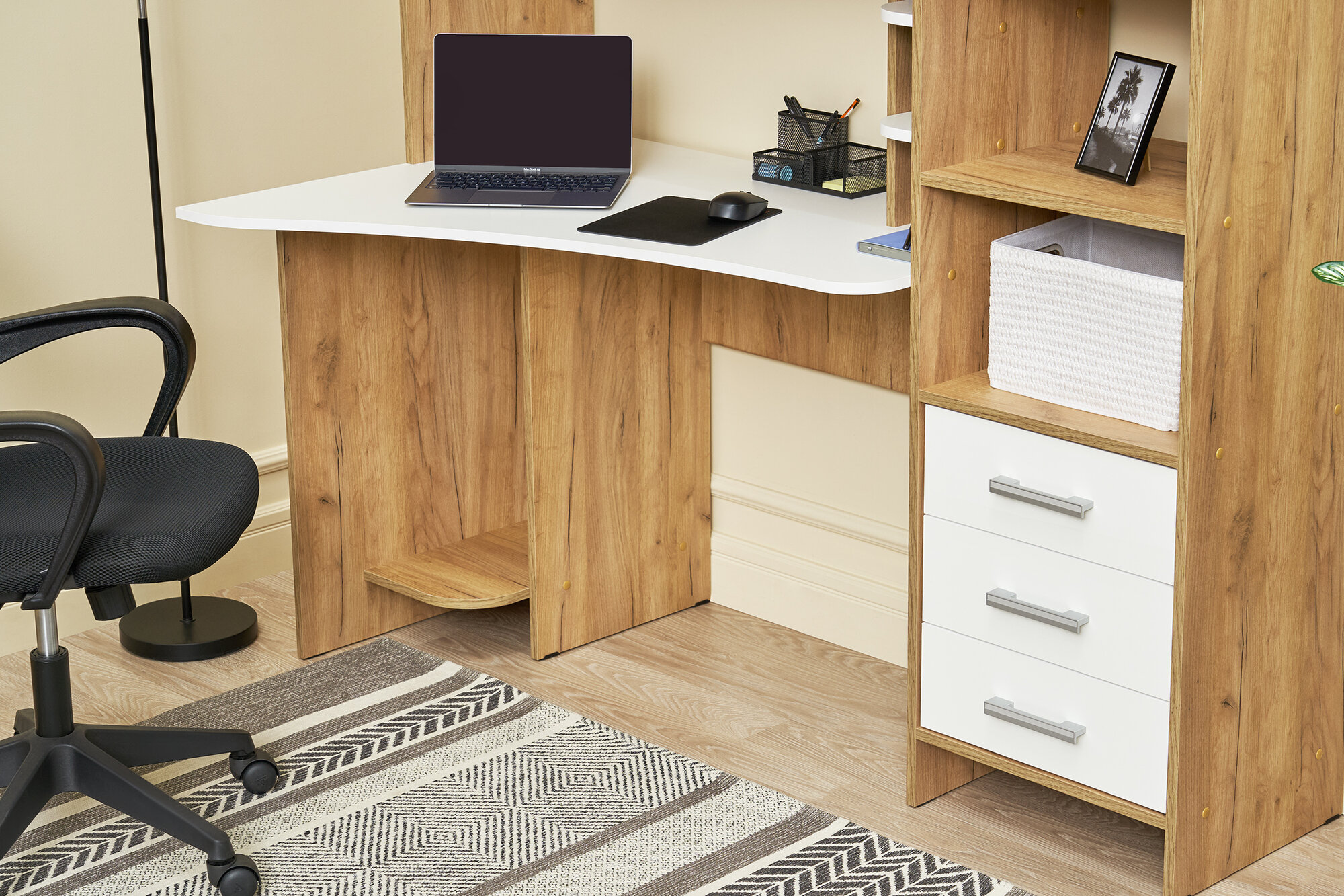 Ниже Вы можете прочитать отзывы на Стол компьютерный Нонтон №6 белый / дуб крафт золото 150x81.4x182 см, ознакомится с подробными характеристиками, посмотреть интересные обзоры и фотографии на Стол компьютерный Нонтон №6 белый / дуб крафт золото 150x81.4x182 см.