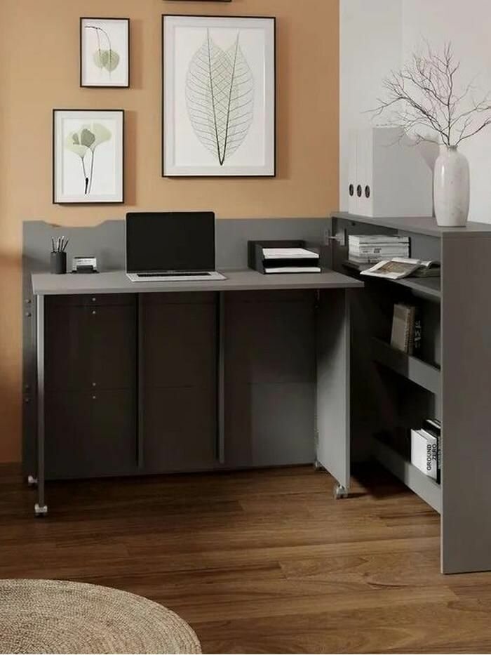 Компьютерный, письменный стол-трансформер Льюис, с полками, складной, Серый графит интересное: