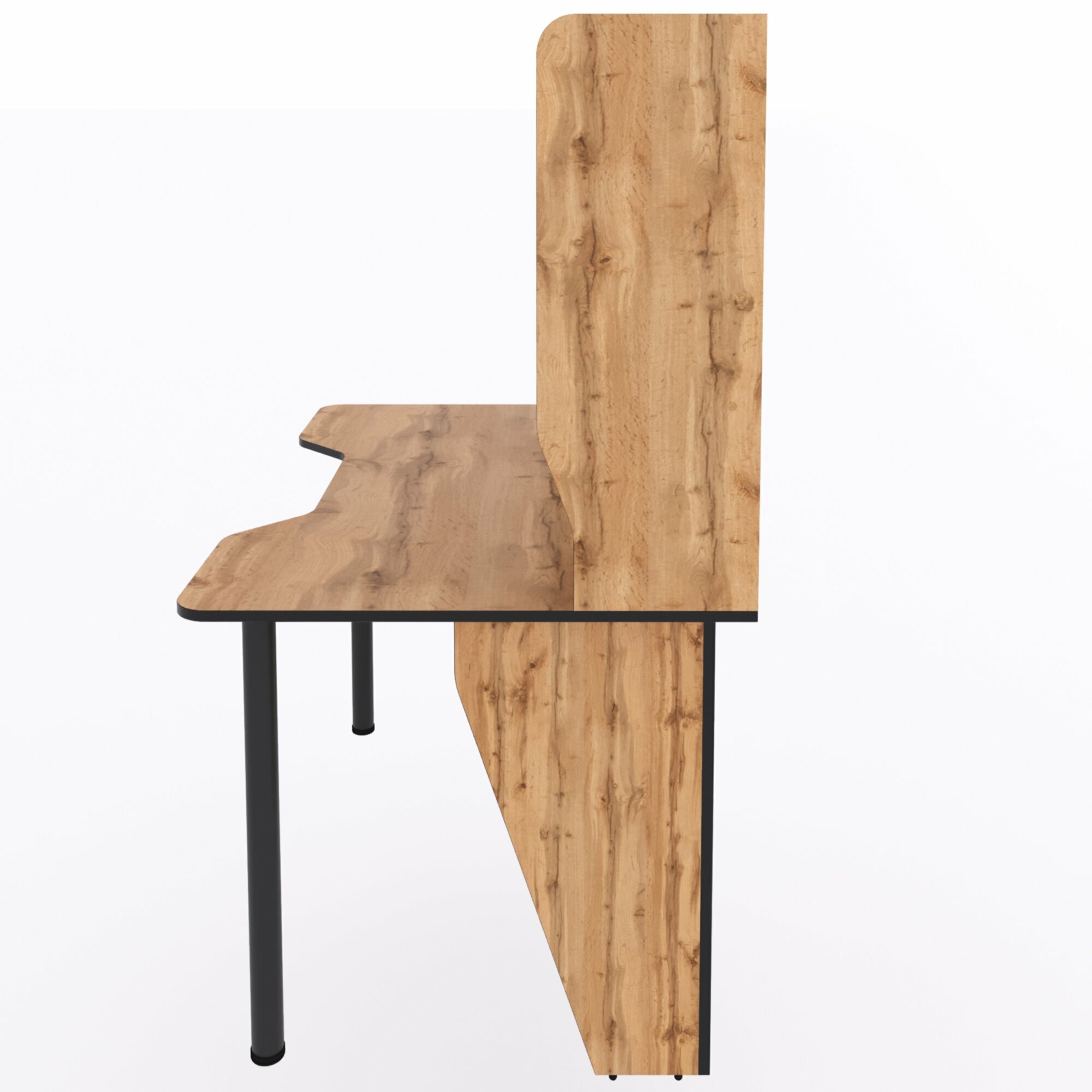 Компьютерный стол "Старк" с большой надстройкой, 140х90х152,6 см, дуб вотан с чёрной кромкой