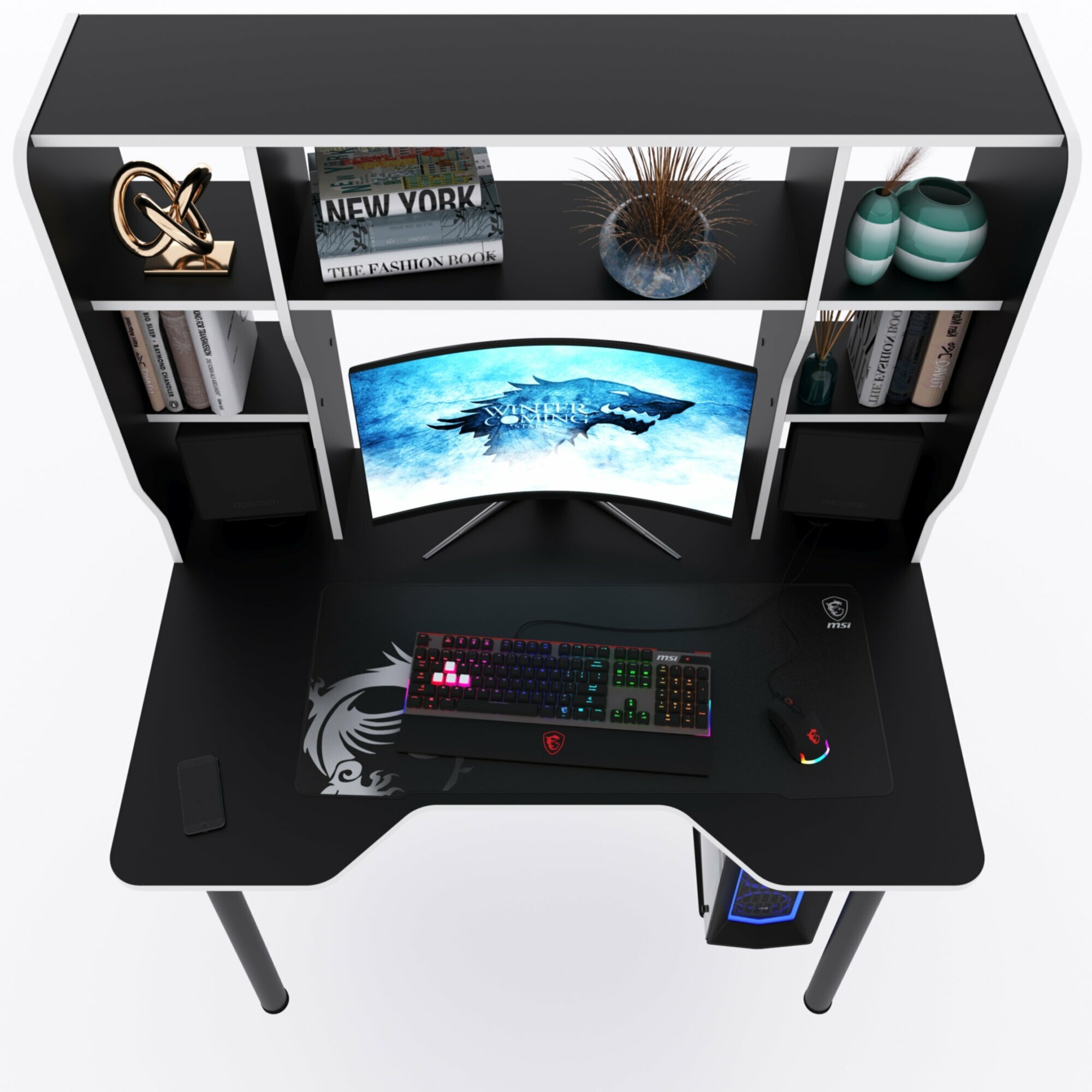 СохранитьКомпьютерный стол "Старк" с большой надстройкой, 120х90х152,6 см, чёрный с белой кромкой интересное: