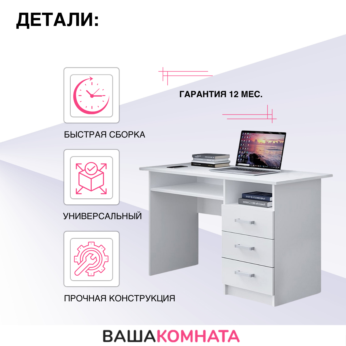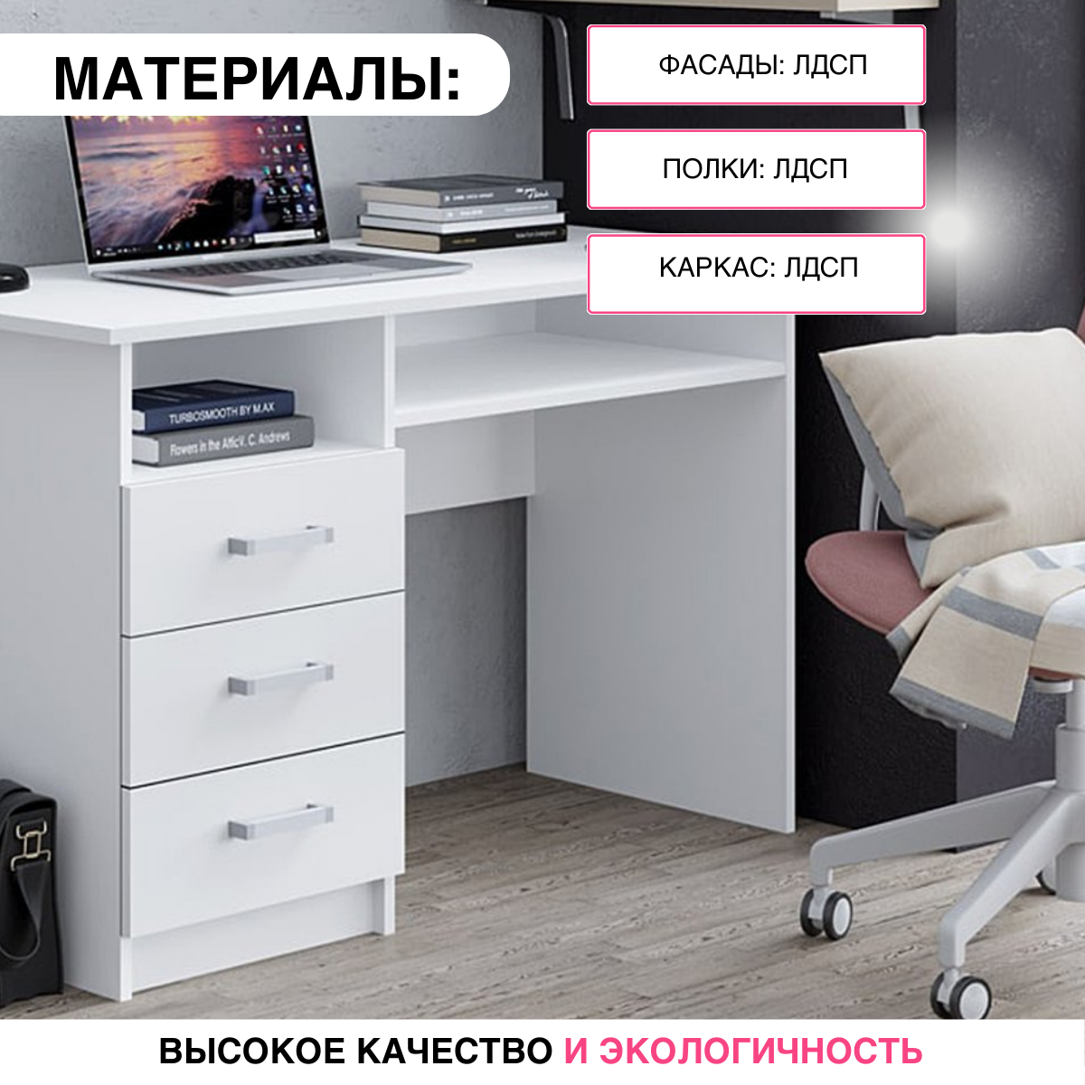 Стол письменный компьютерный для школьника ПС-02 с ящиками, прямой, белый интересное: