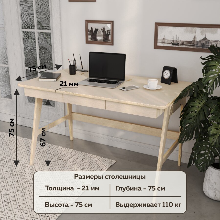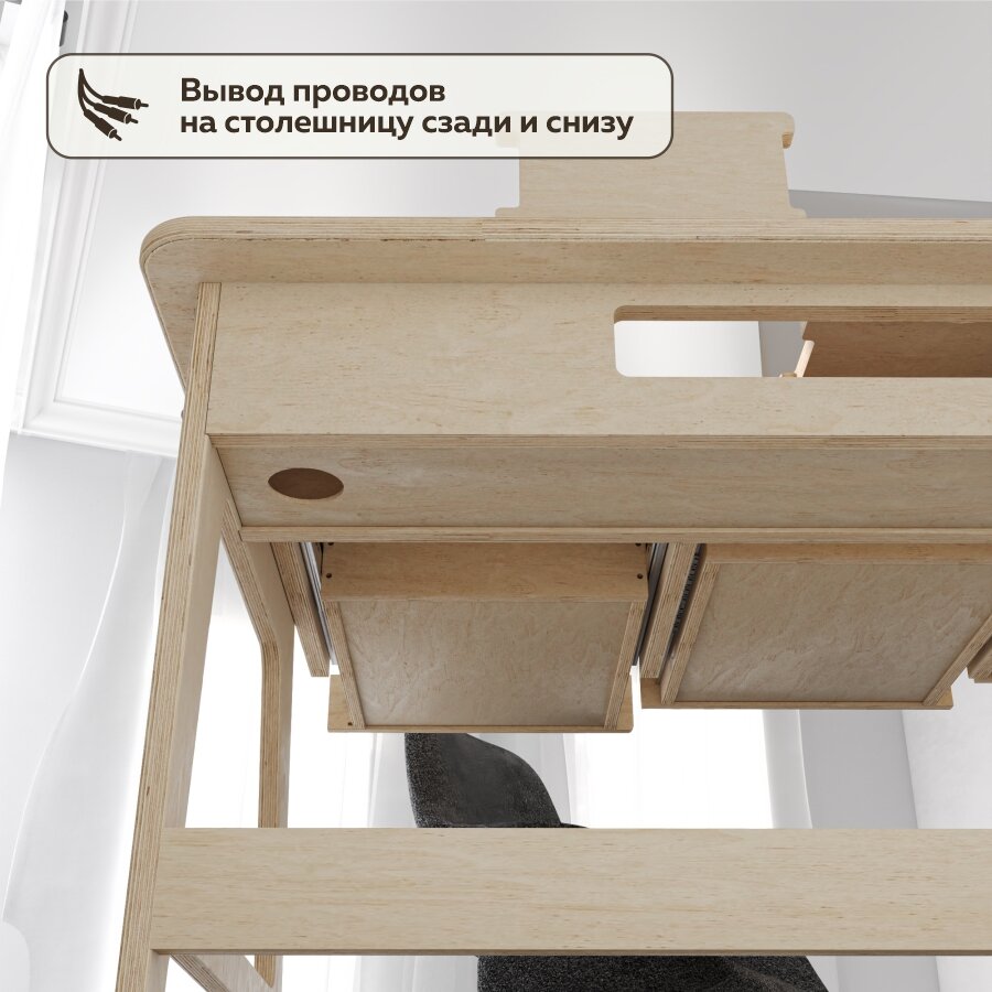 СохранитьСтол компьютерный письменный "GESHA" 130x75x75 см с ящиками, с органайзером, березовая фанера, цвет натуральное дерево интересное: