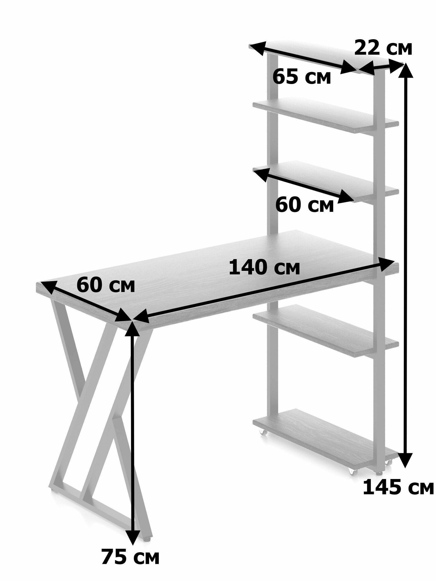 Стол компьютерный Loft с пятью полками, столешница голубого цвета из массива сосны 40 мм и белые металлические Z-образные ножки, 140х60х145 см интересное: