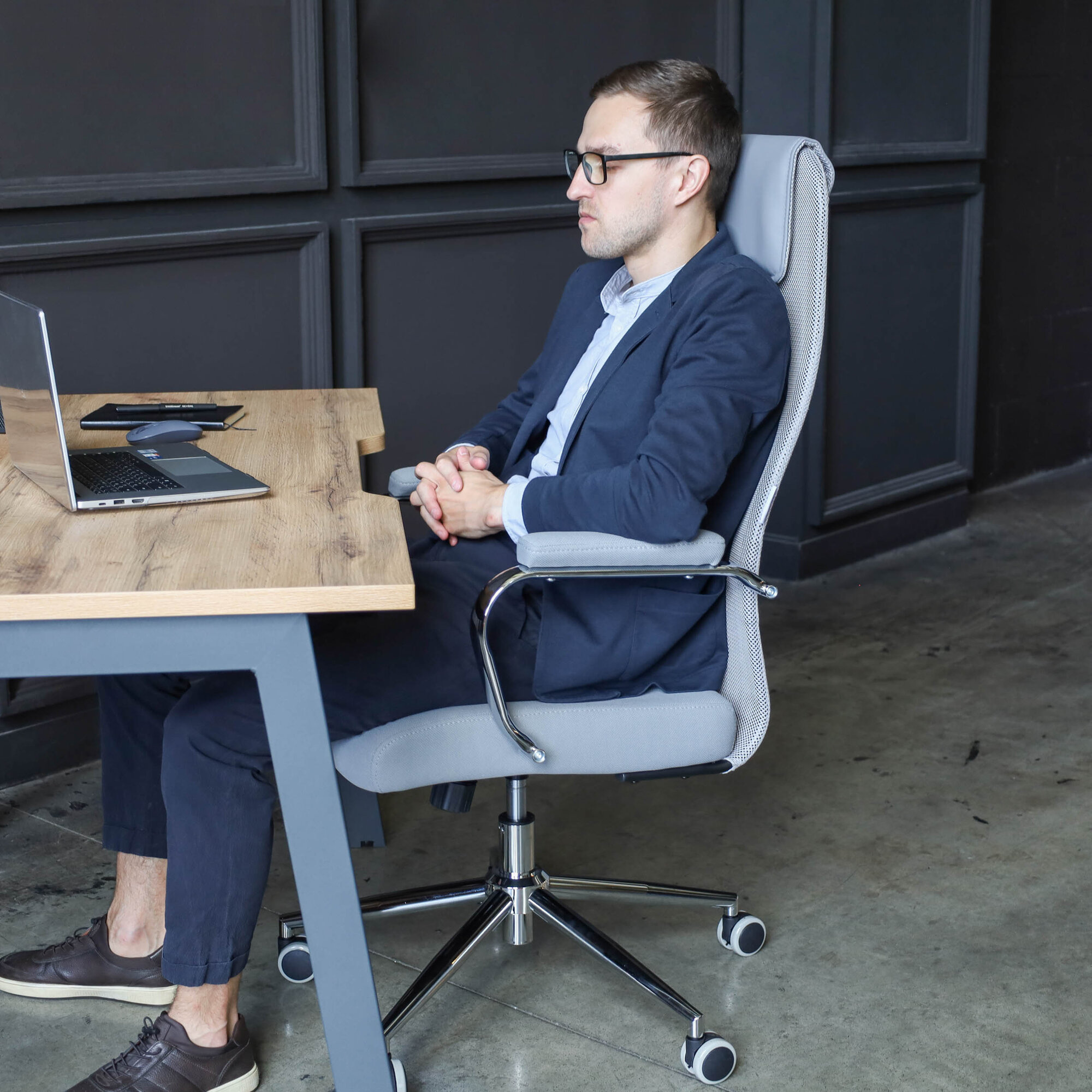 Кресло компьютерное Comiron CH-9M Ch, кресло офисное с подголовником св. серая сетка / хром интересное: