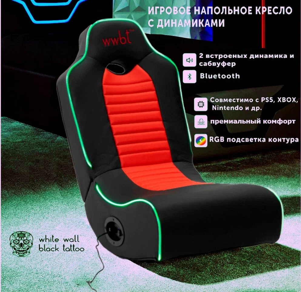 Кресло игровое напольное с RGB подсветкой для видеоигр premium черно/красный интересное: