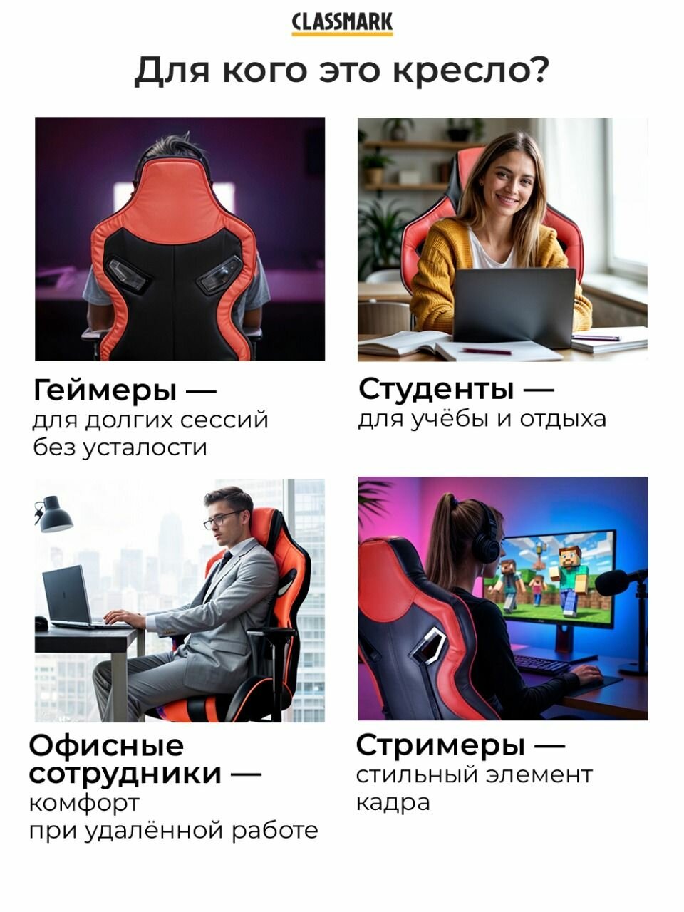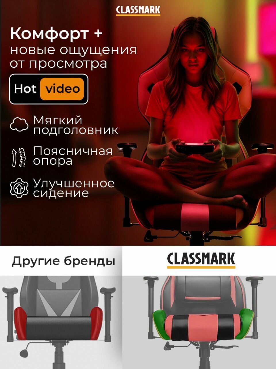 Кресло компьютерное Classmark, игровое, экокожа, эффект памяти