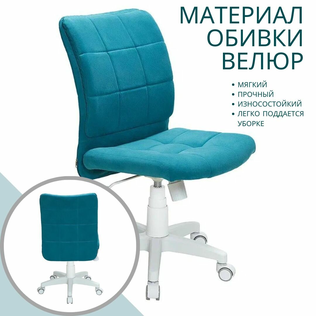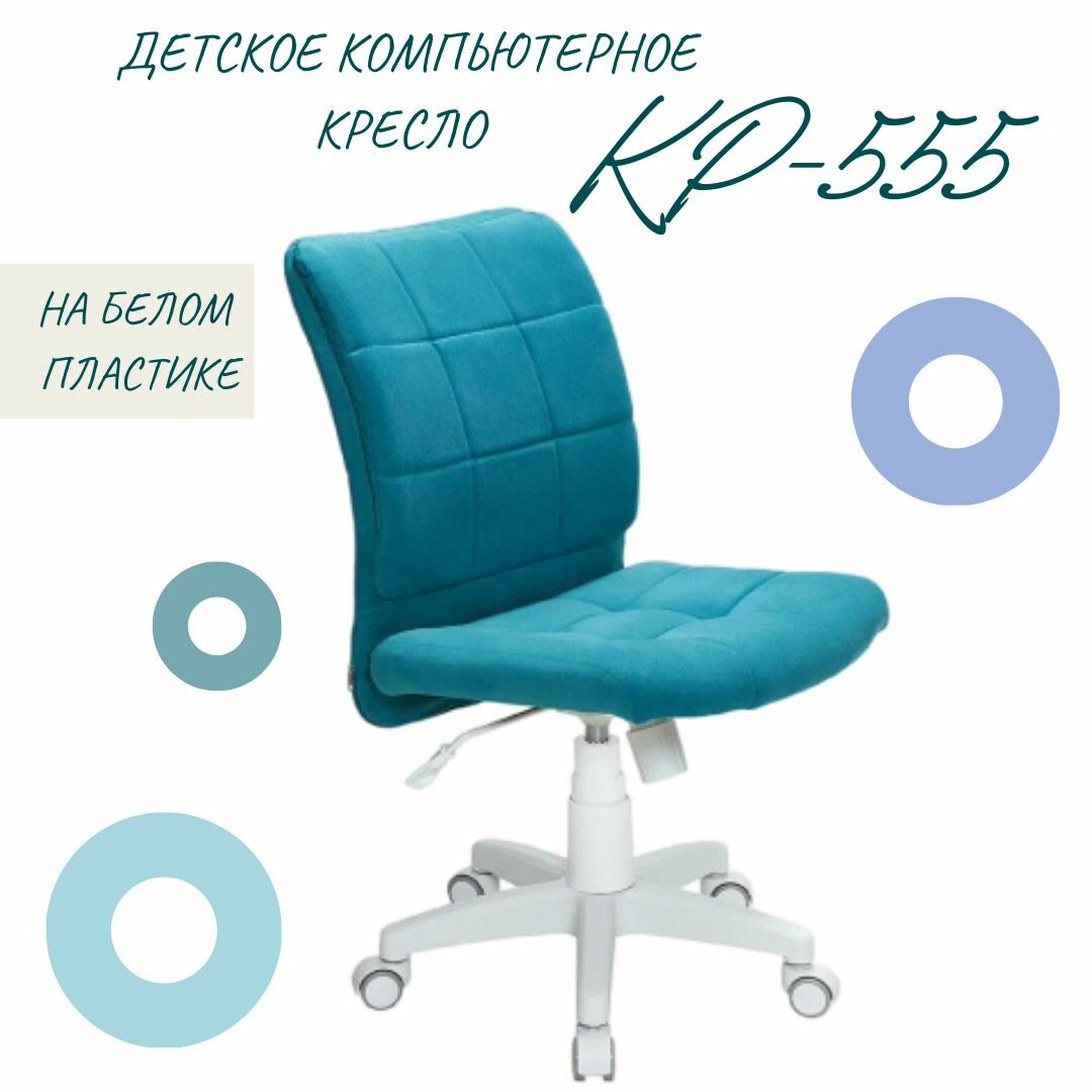 Купить Детское компьютерное кресло КР-555, белый пластик, бирюзовое / Компьютерное кресло для ребенка, школьника, подростка