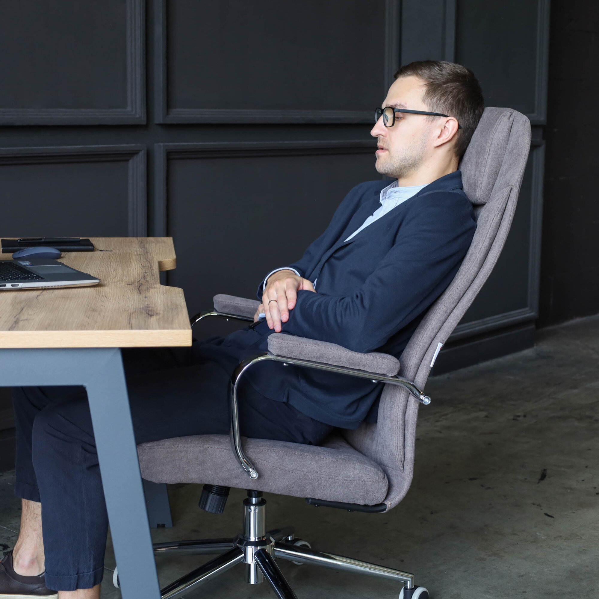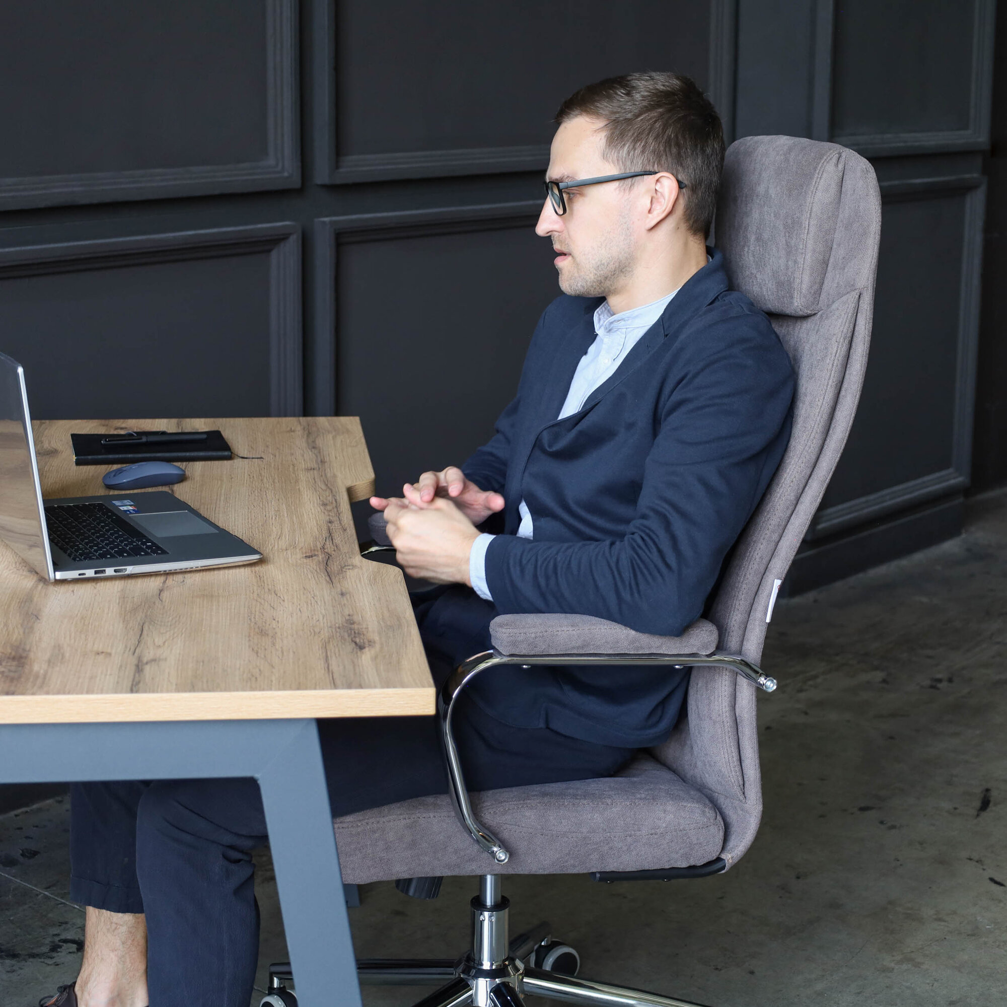 Компьютерное кресло руководителя, кресло офисное, Comiron CH-10M Ch Серый экокожа/хром