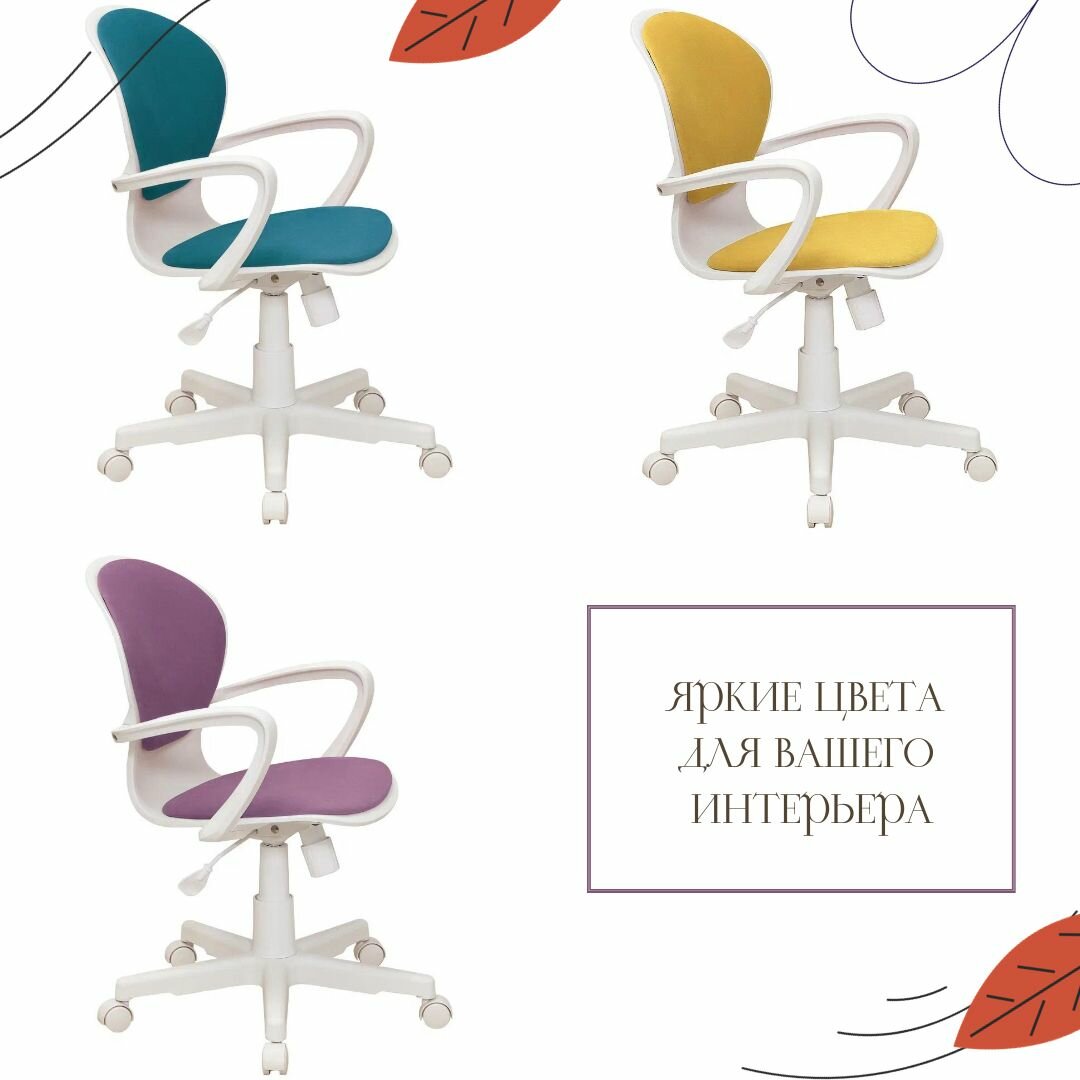 Детское компьютерное кресло Bloom, бирюзовое / Компьютерное кресло для ребёнка, школьника, подростка/ пластик белый