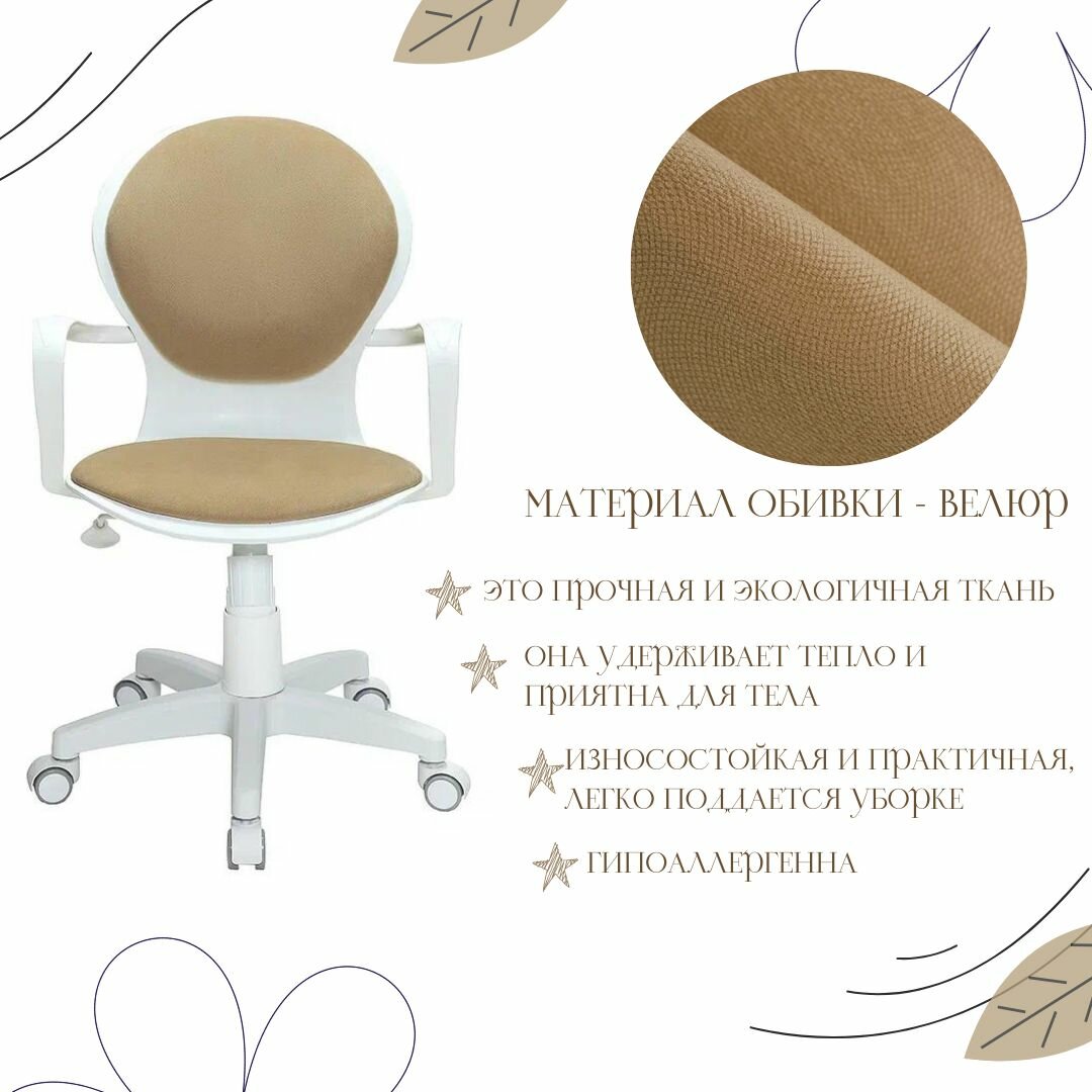 Детское компьютерное кресло Bloom, кремовое / Компьютерное кресло для ребёнка, школьника, подростка/ пластик белый
