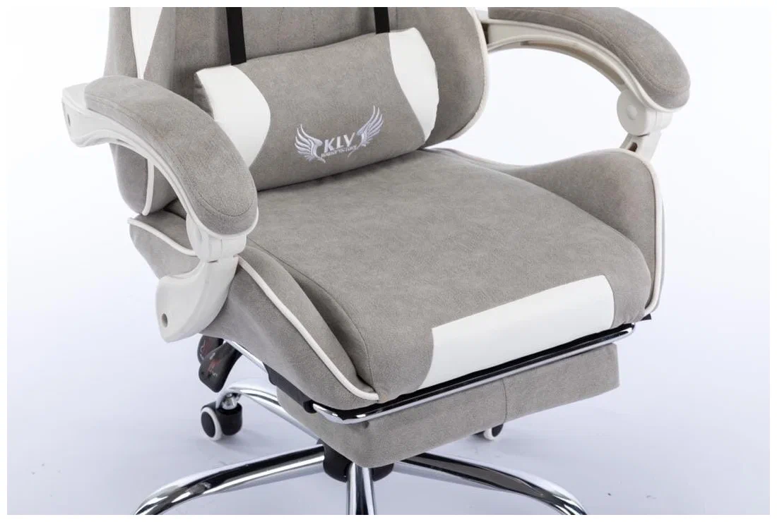 Компьютерное игровое геймерское кресло с подставкой для ног серое тканевое интересное: