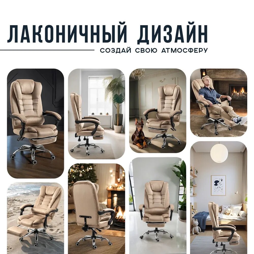 Кресло руководителя с подножкой, кресло компьютерное с подставкой для ног, прочная ткань, бежевое интересное: