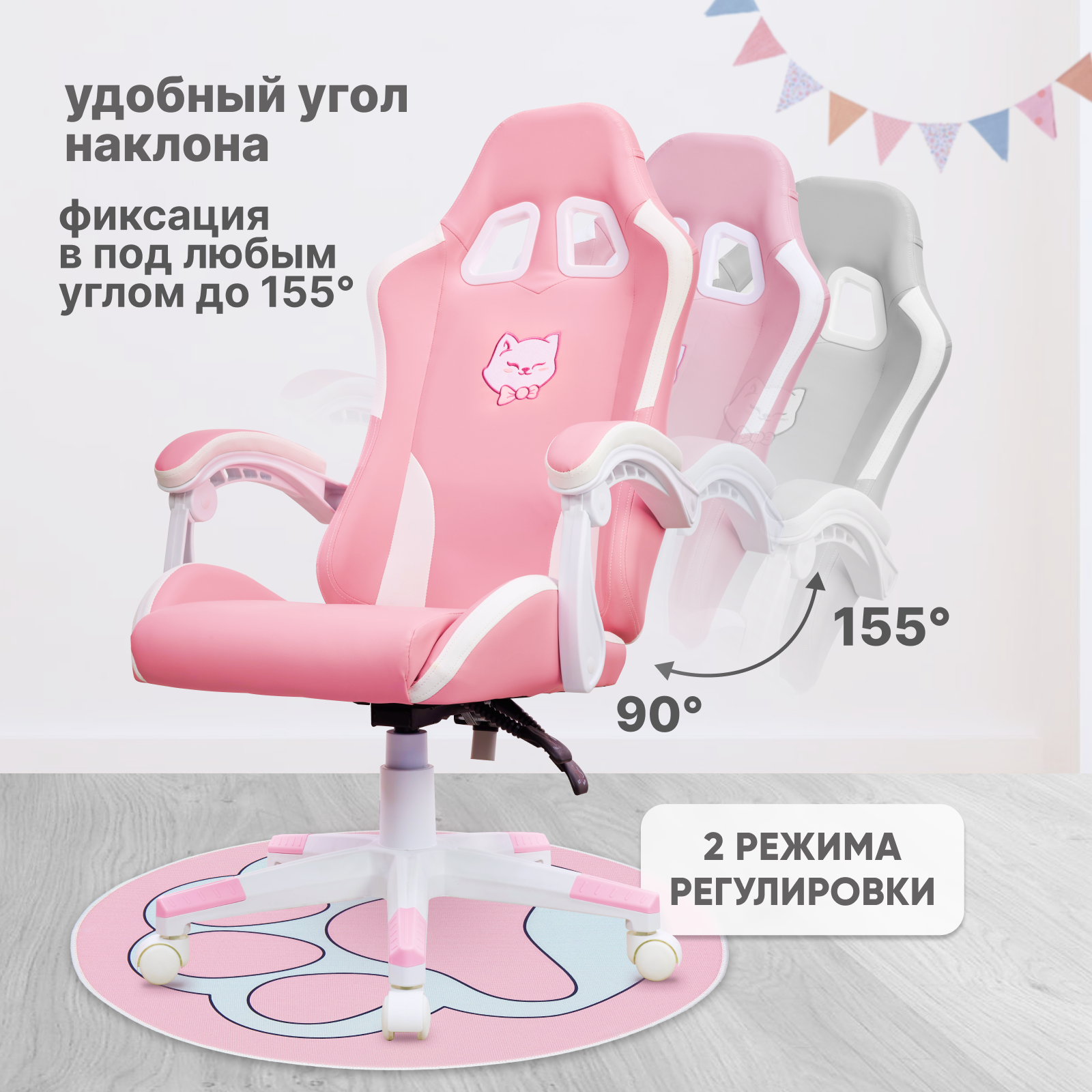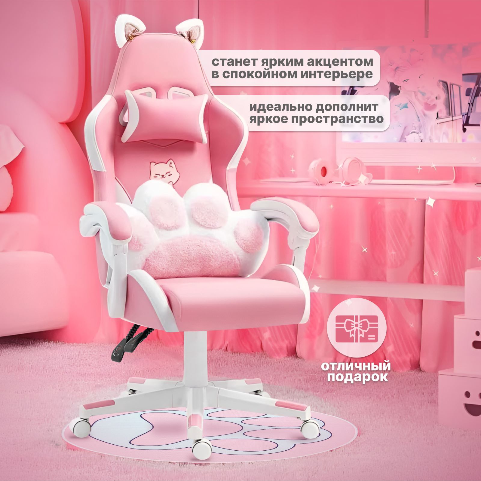 Купить Кресло компьютерное игровое розовое, геймерский стул для подростков с ушками, экокожа