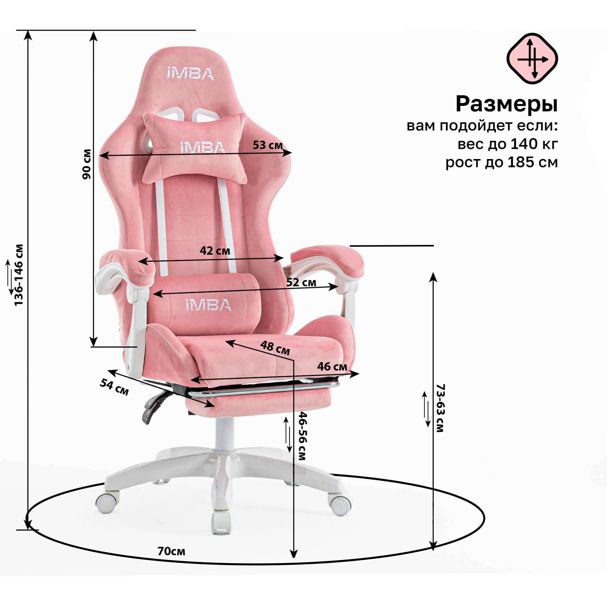 Кресло компьютерное игровое, IMBA, геймерское розовое с подставкой для ног интересное: