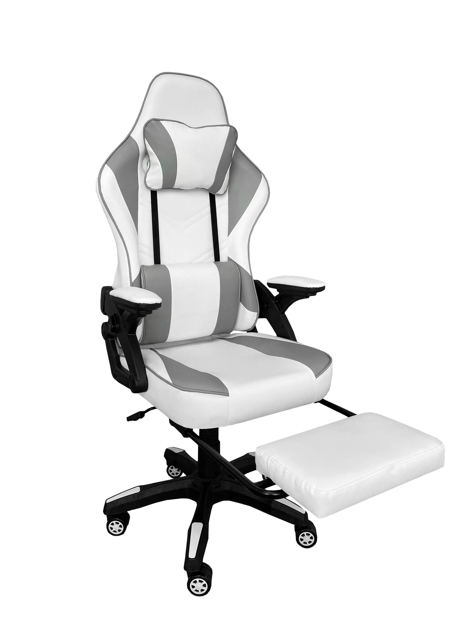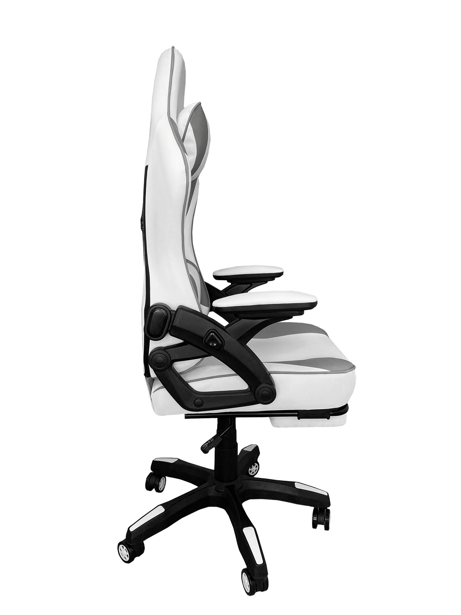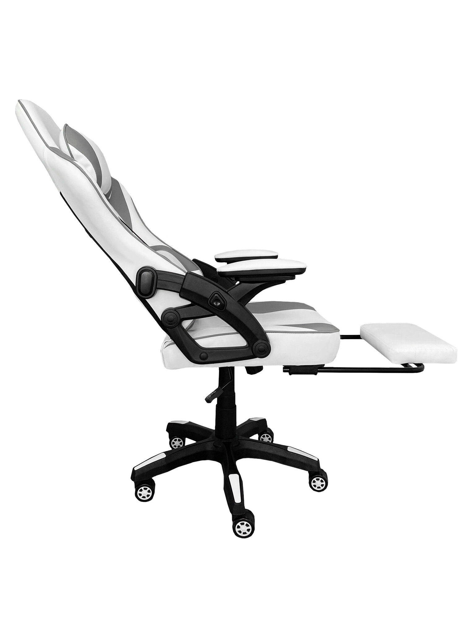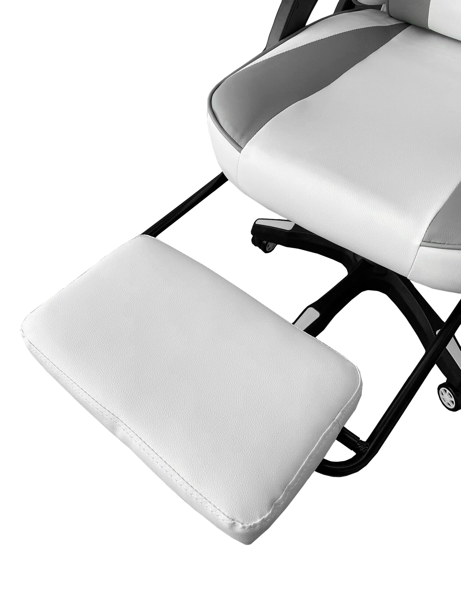 Кресло компьютерное игровое с подставкой для ног, цвет : белый, обивка: искусственная кожа, модель 205F