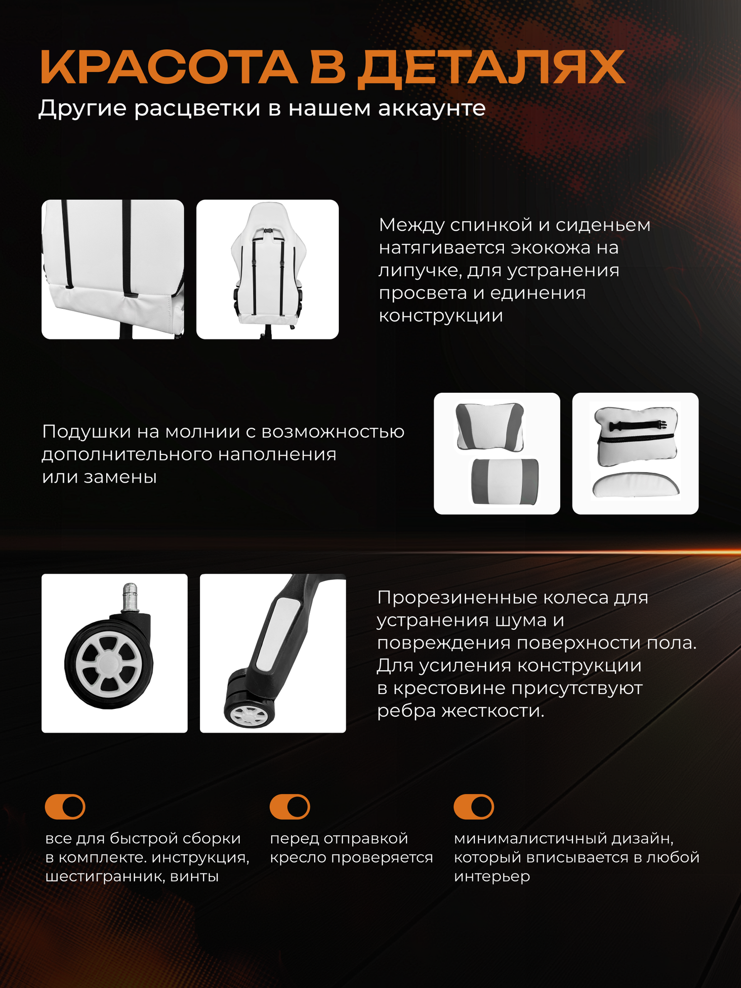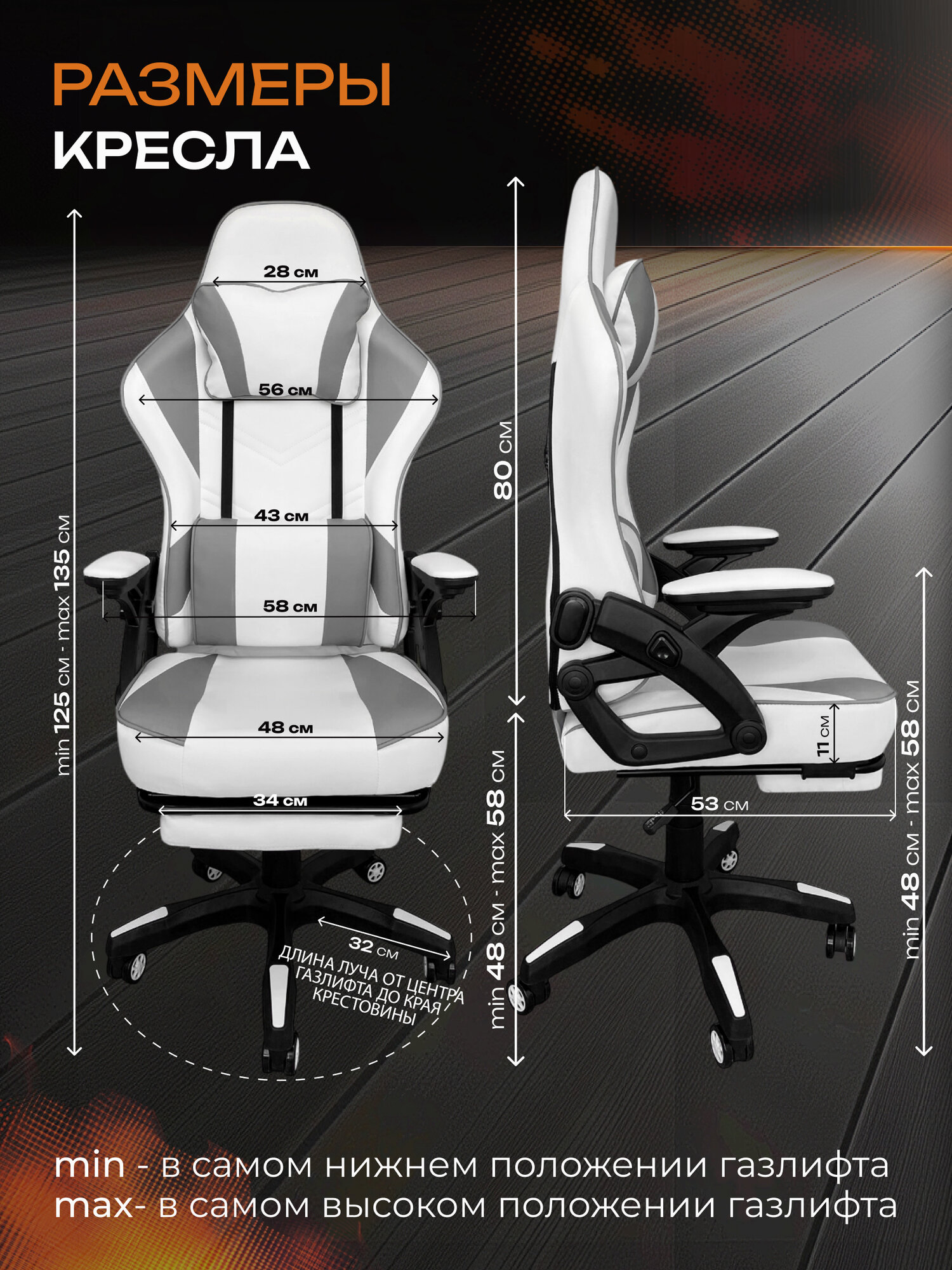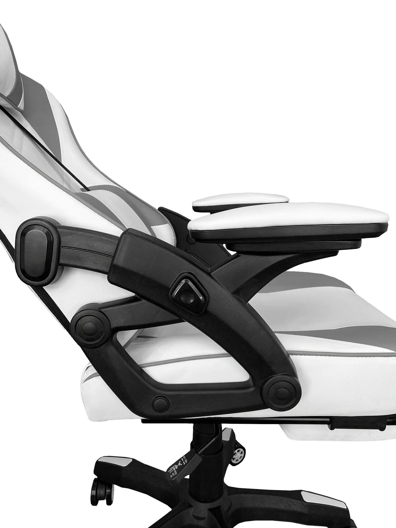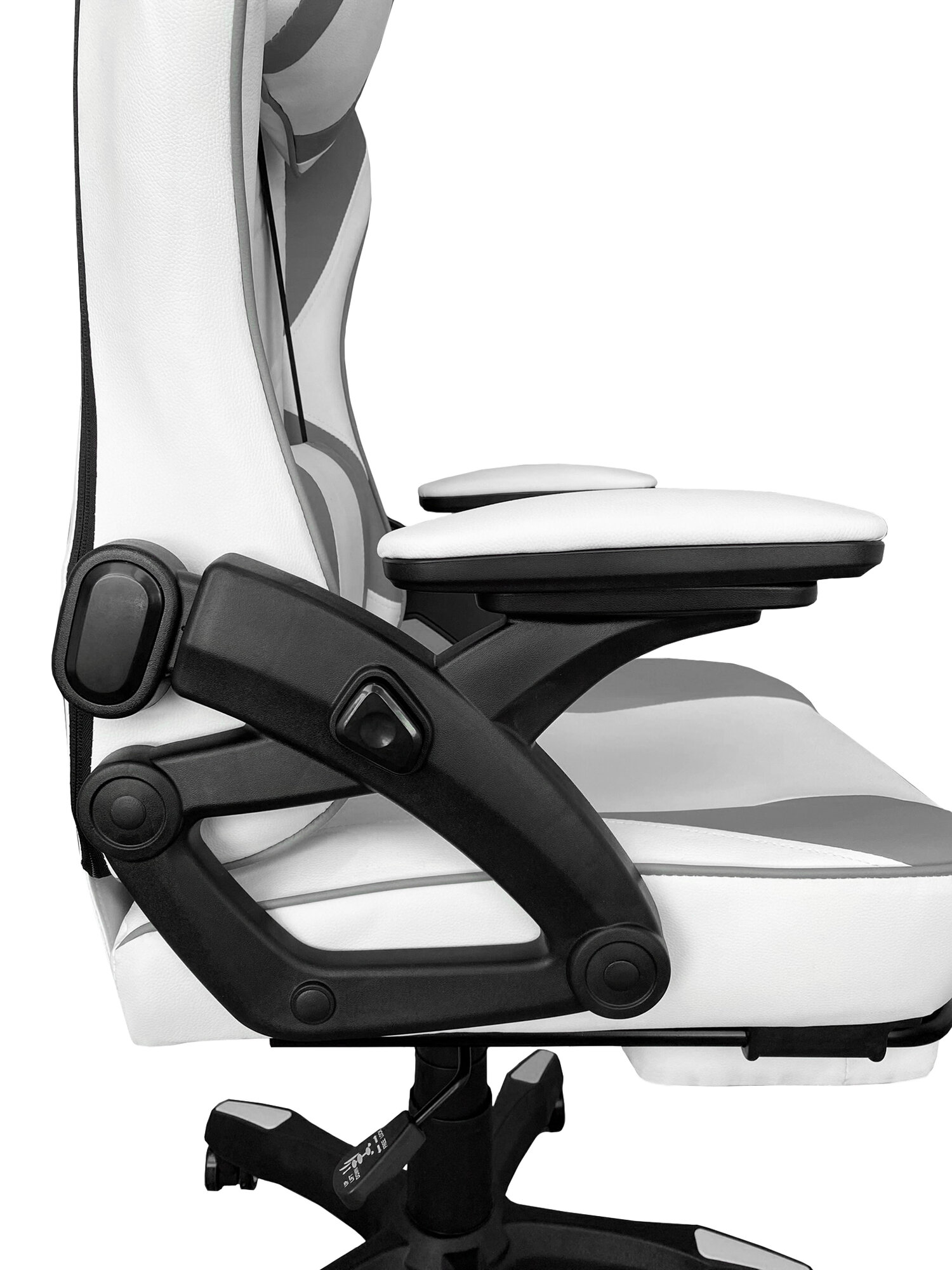 Кресло компьютерное игровое с подставкой для ног, цвет : белый, обивка: искусственная кожа, модель 205F