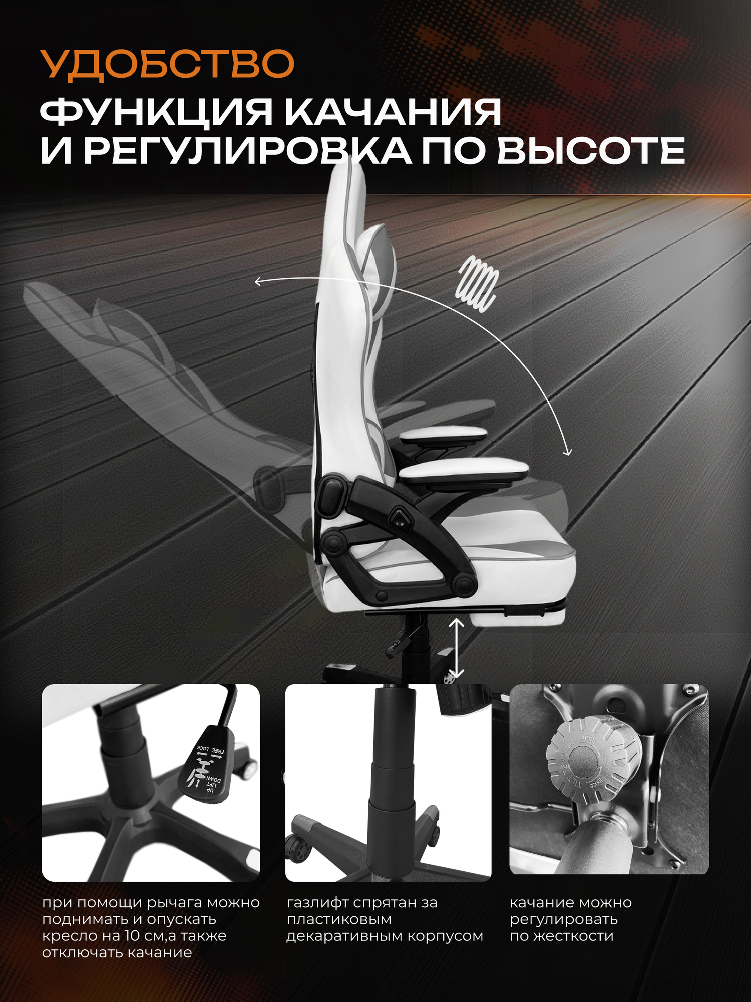 СохранитьКресло компьютерное с подставкой для ног , функция качания , цвет : белый ; светло-серый. интересное: