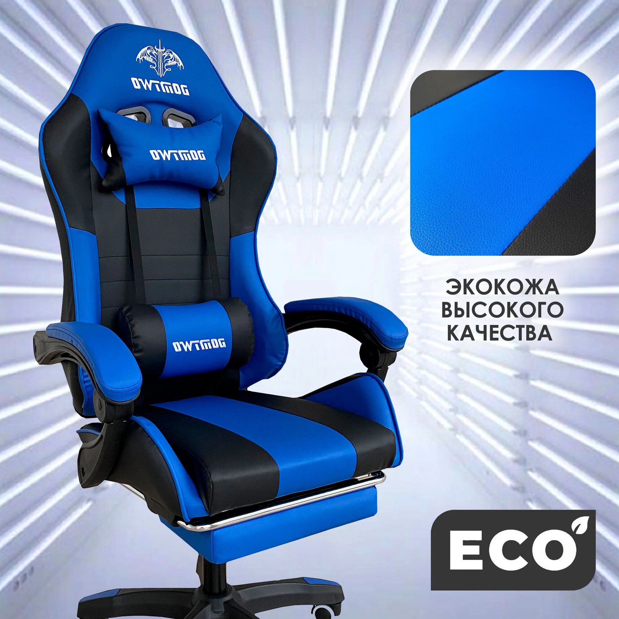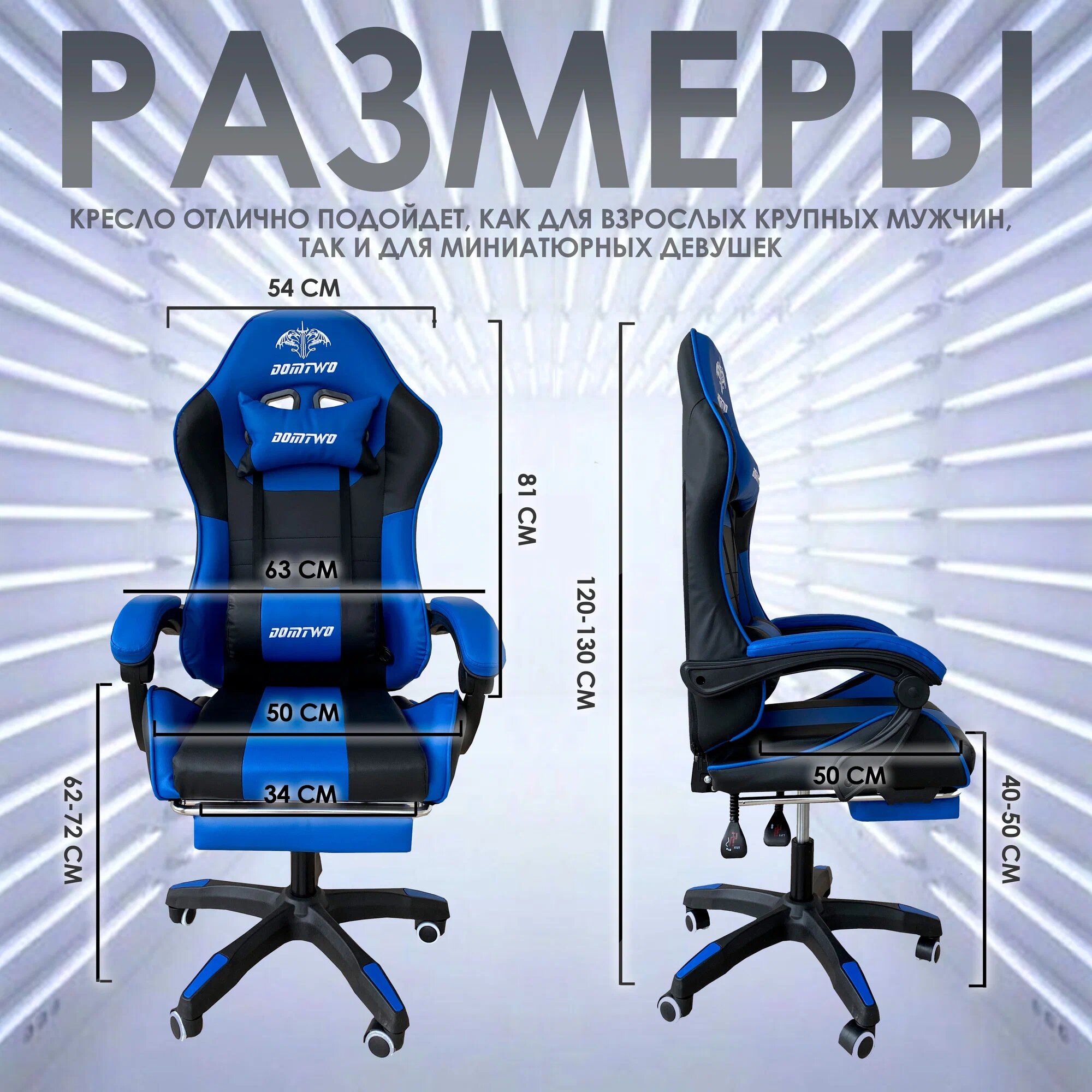 Купить Кресло компьютерное игровое с подставкой для ног, цвет : синий, обивка: искусственная кожа, модель 205F