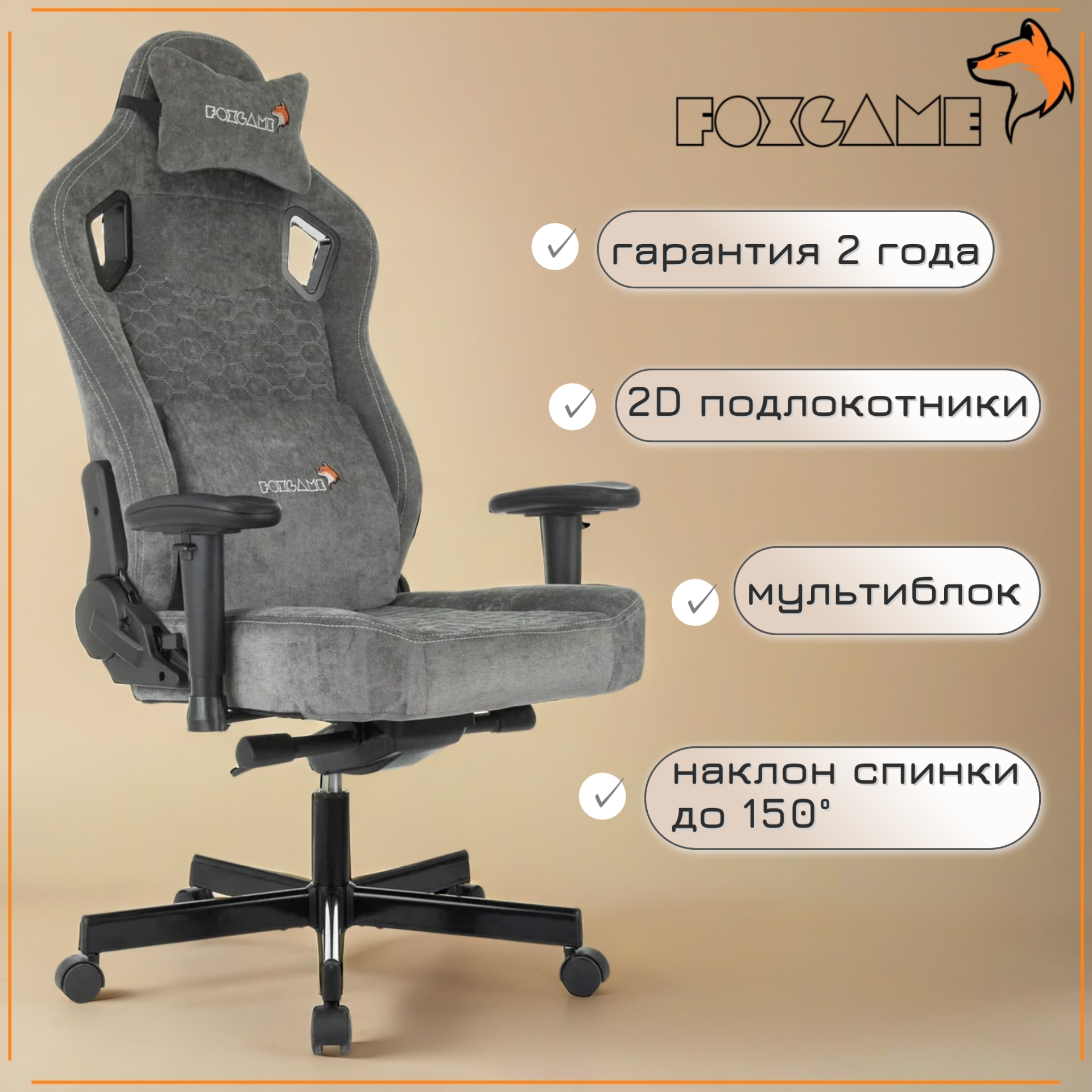 Кресло игровое Foxgame Defender серое, мультиблок, металлическая крестовина интересное: