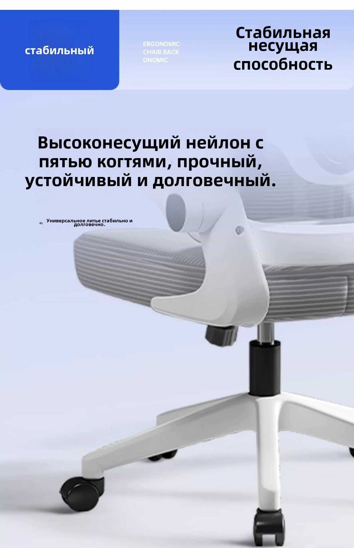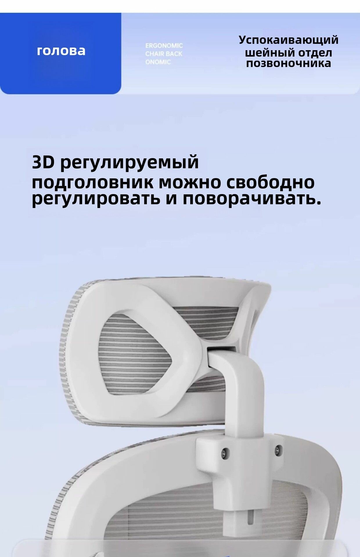 Офисное кресло для отдыха, регулируемый подголовник, латексная подушка, бело-серый цвет