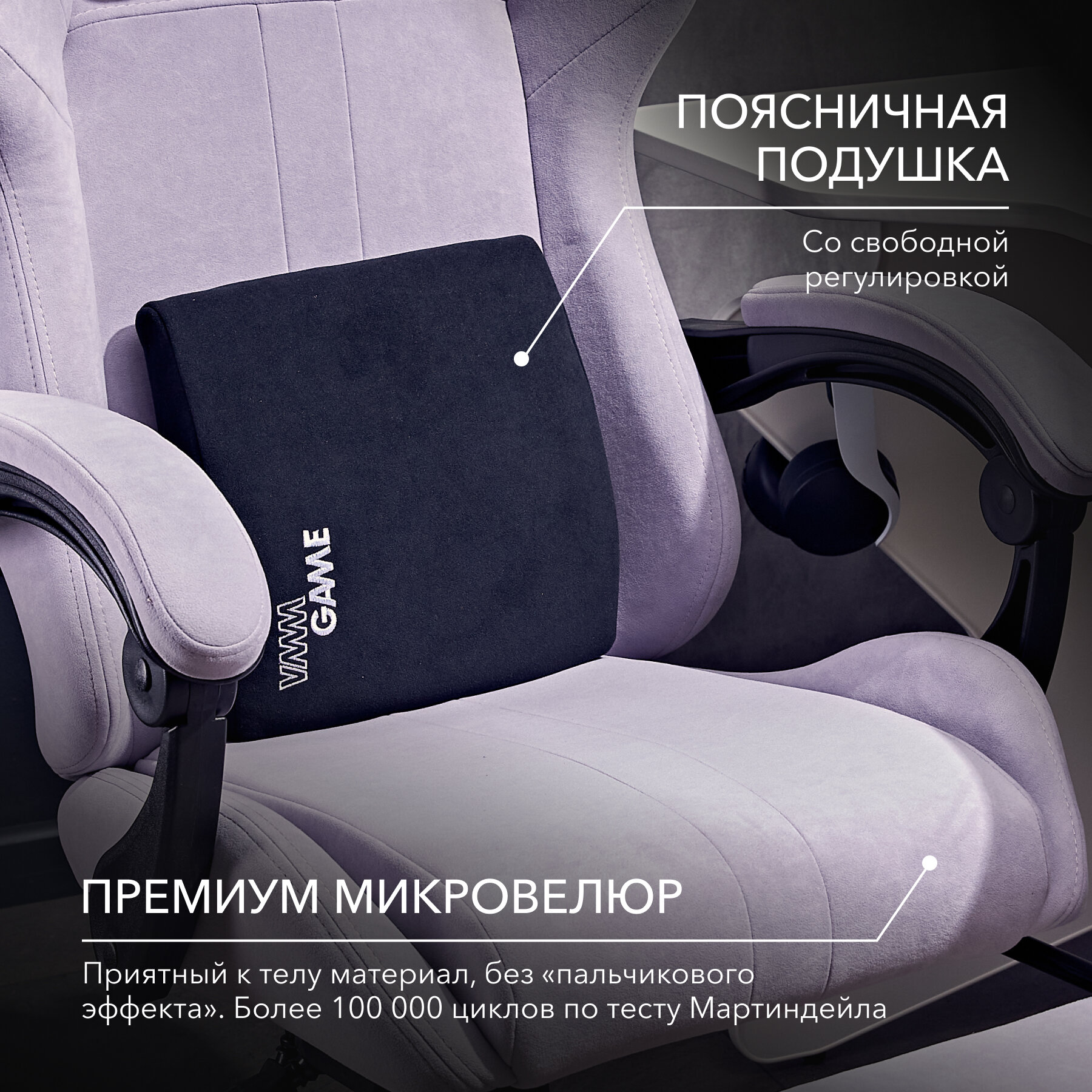 Игровое компьютерное кресло VMMGAME THRONE NEW ERA VELOUR LAVENDER интересное: