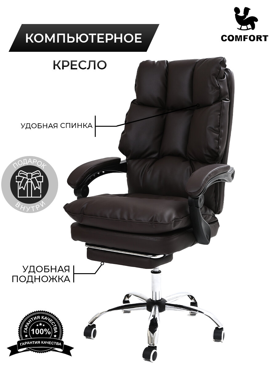 Купить Компьютерное офисное мягкое кресло KRESLO COMFORT, обивка экокожа, цвет: коричневый