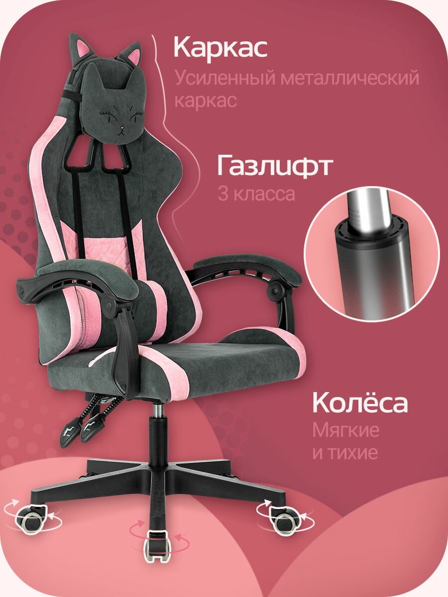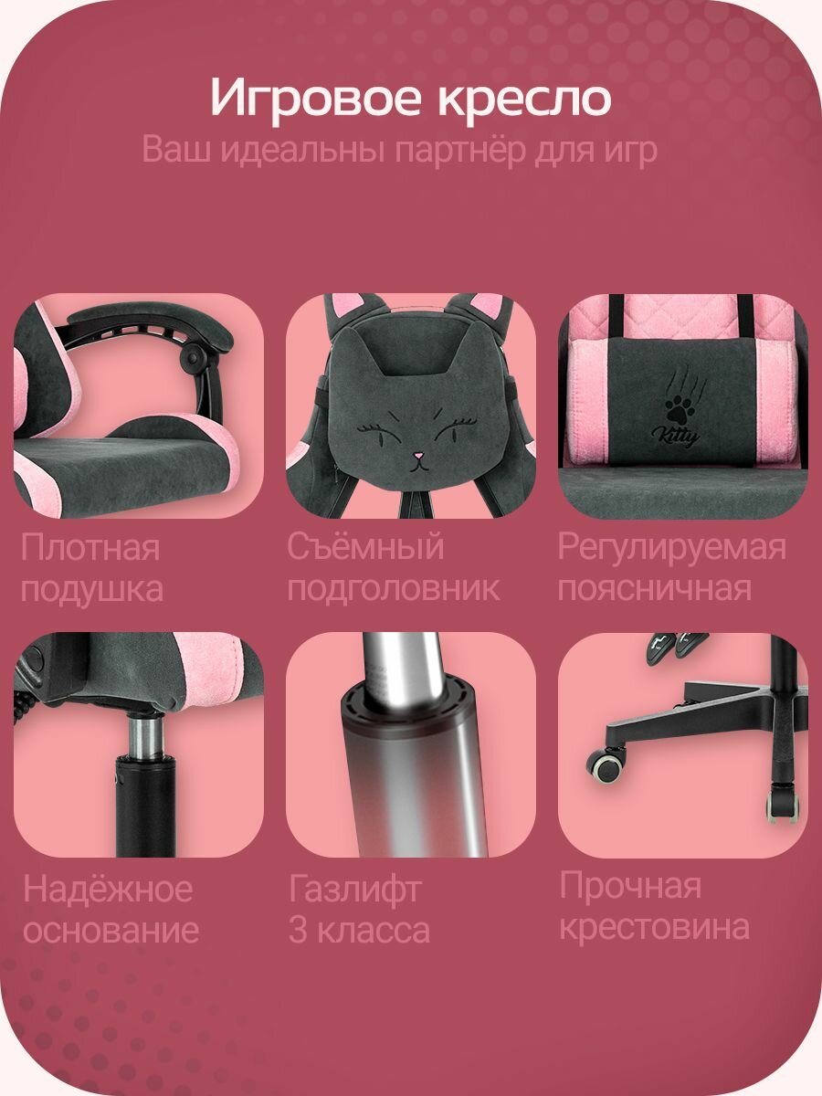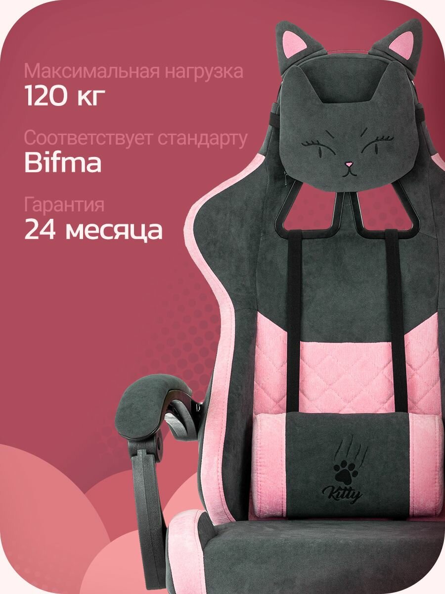 Кресло игровое Knight Kitty Fabric серый/розовый интересное: