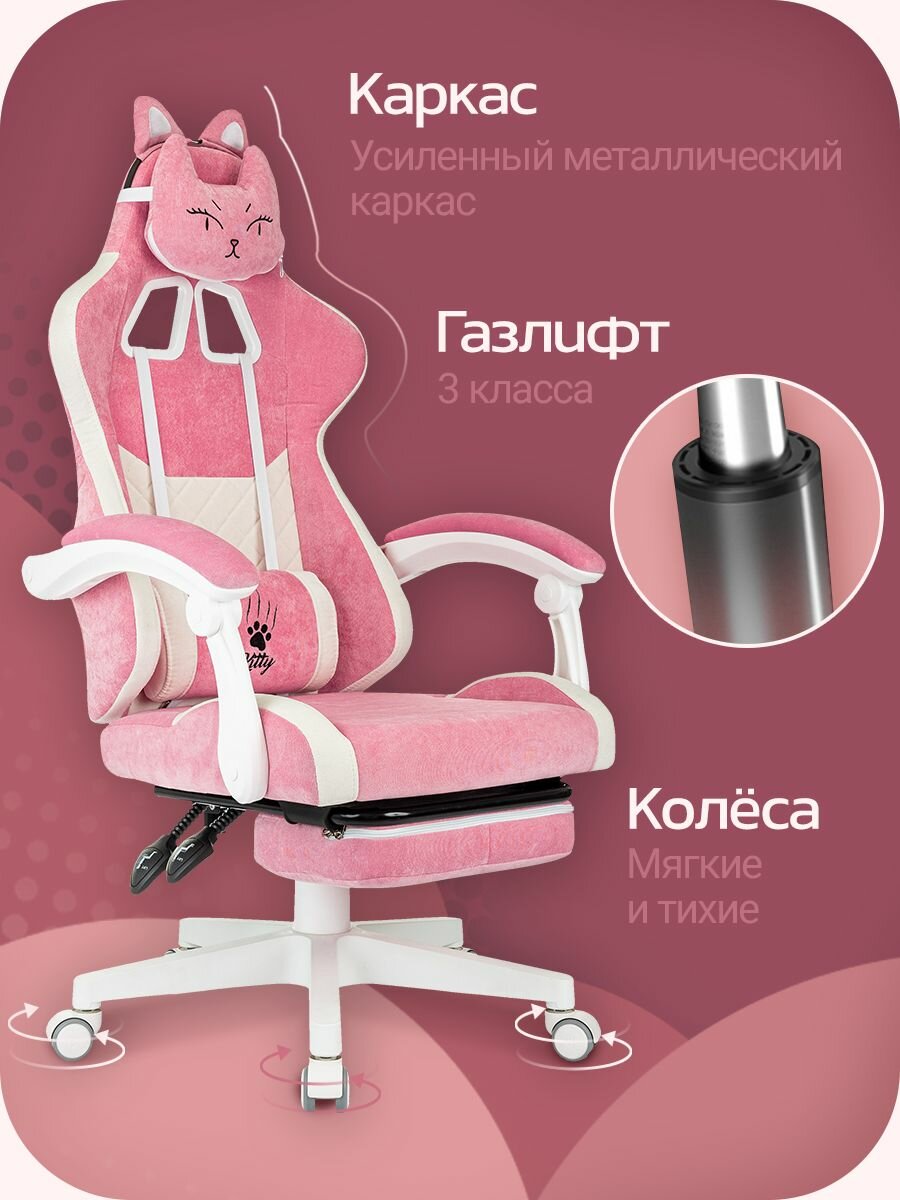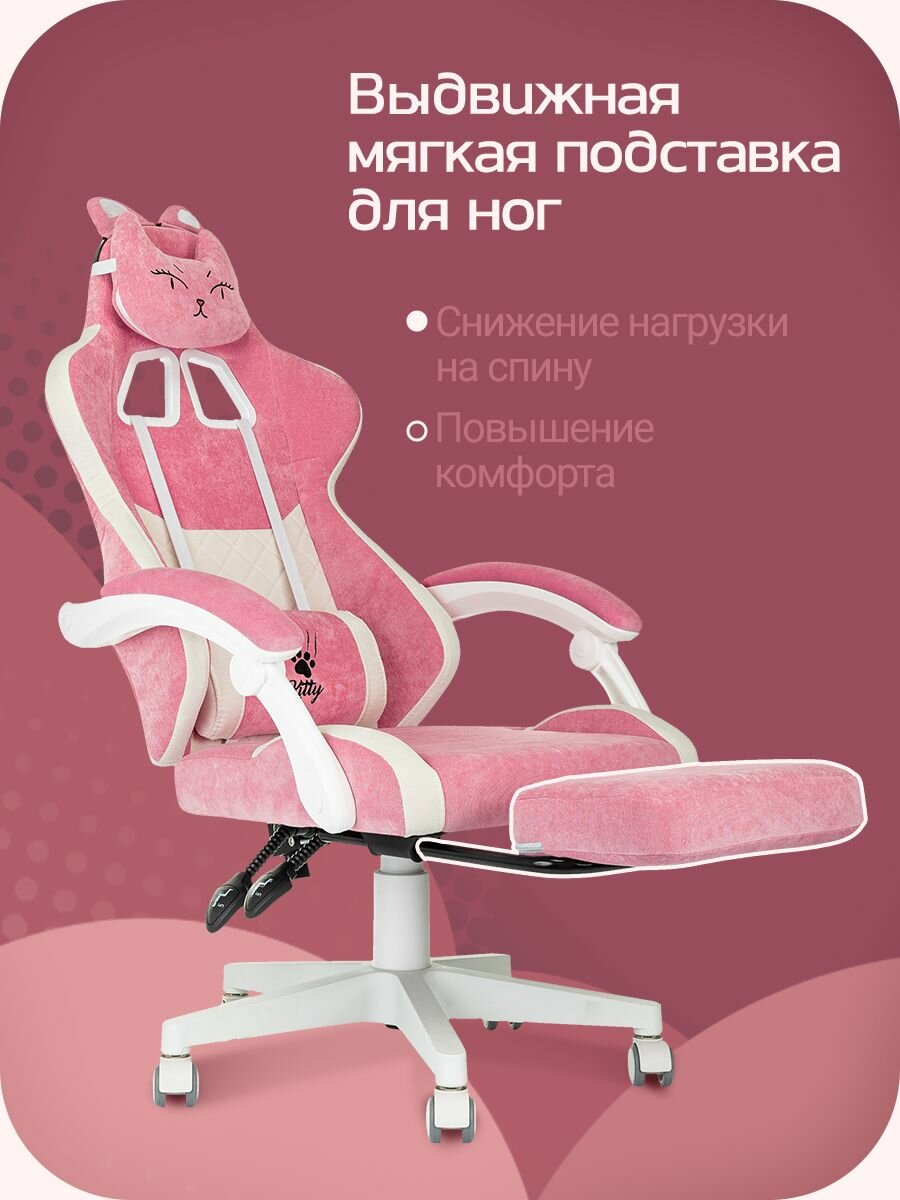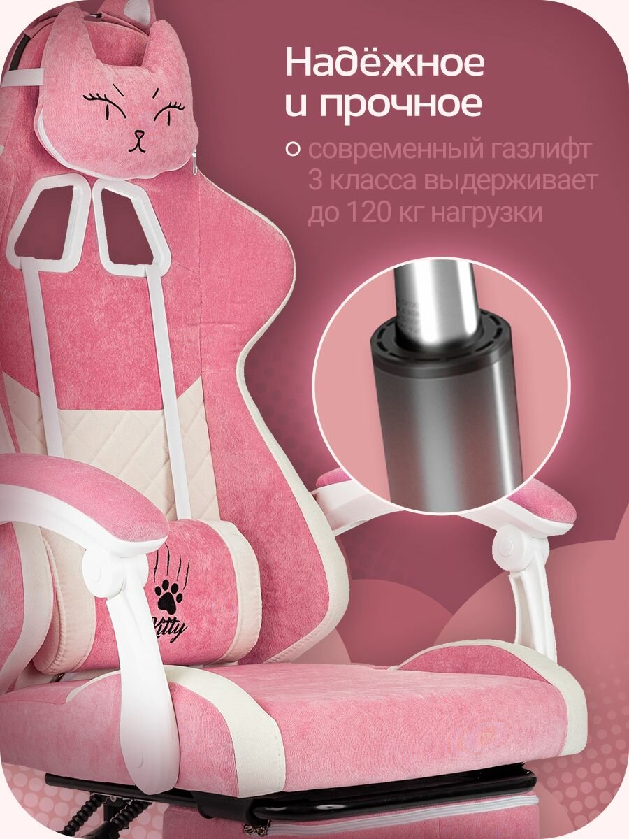 Кресло игровое Knight Kitty W розовый/молочный с подножкой интересное: