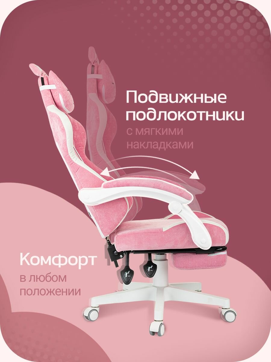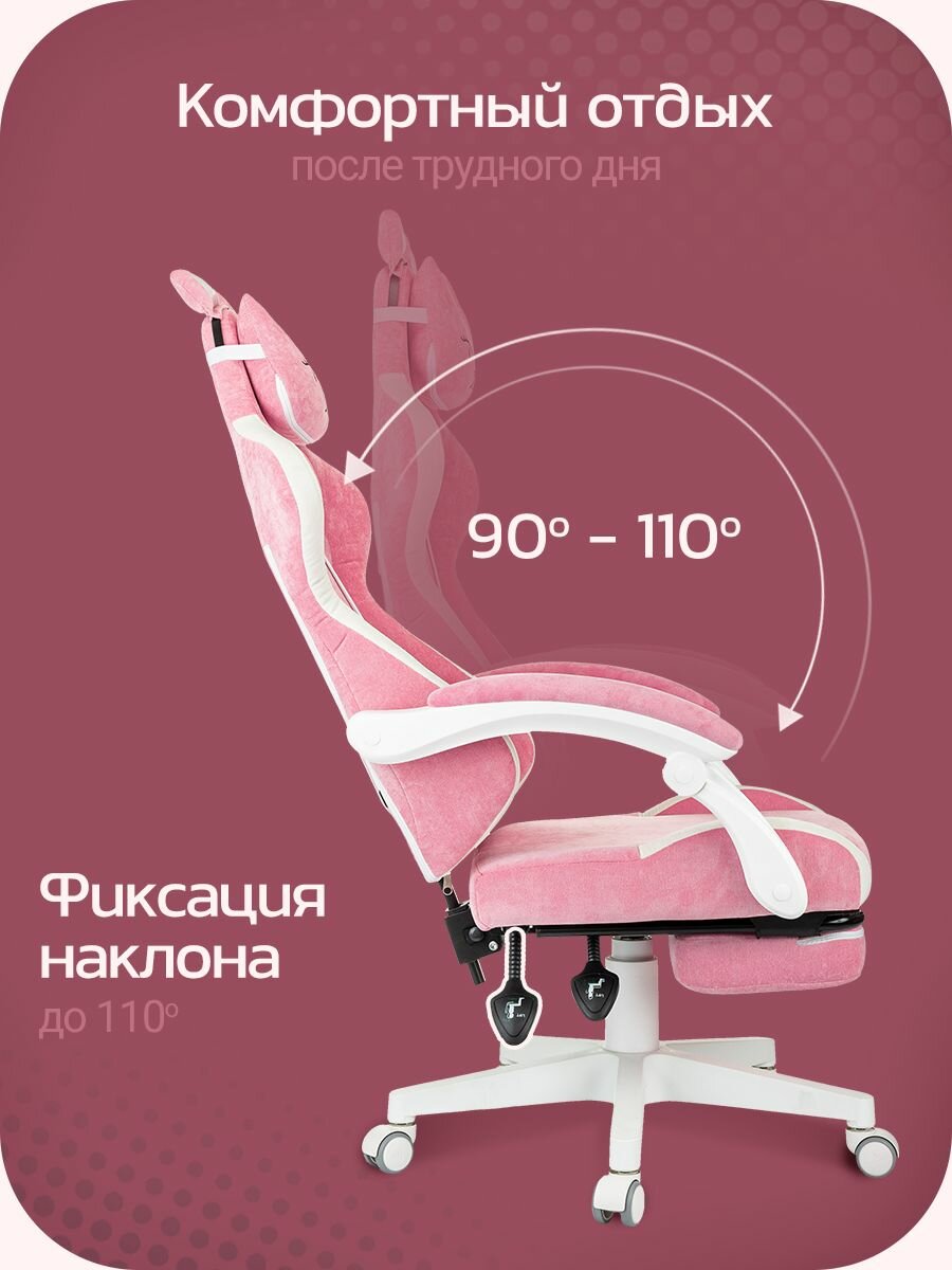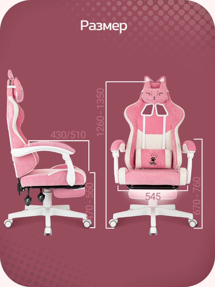 Кресло игровое Knight Kitty W розовый/молочный с подножкой интересное: