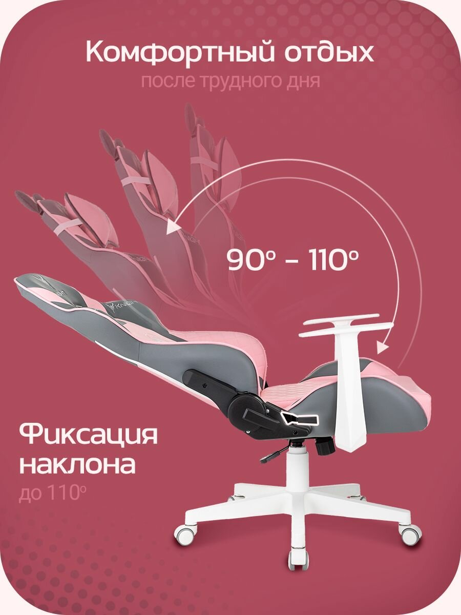 Кресло игровое Knight Catzy серый/розовый интересное: