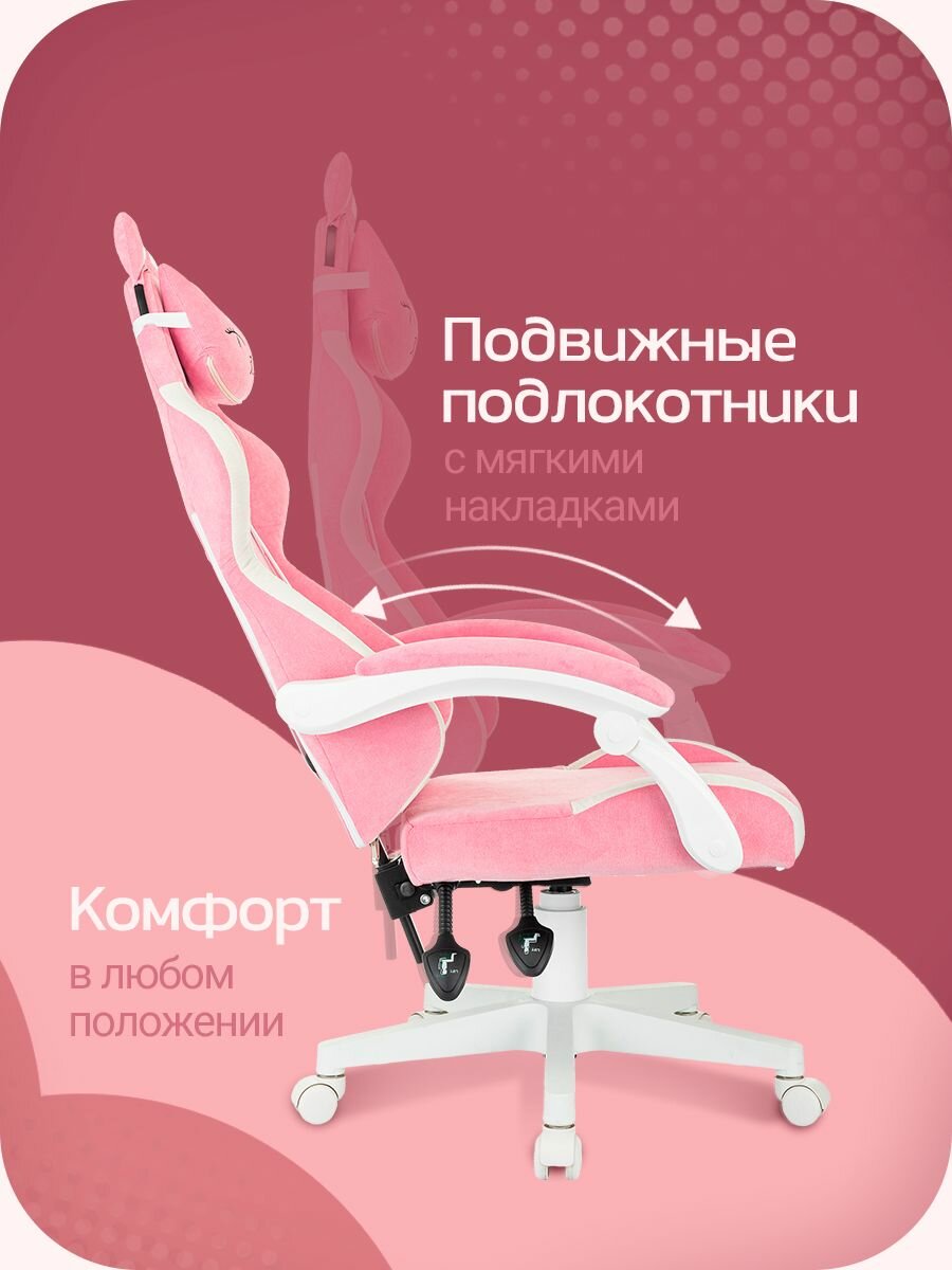 Кресло игровое Knight Kitty W розовый/молочный с подножкой