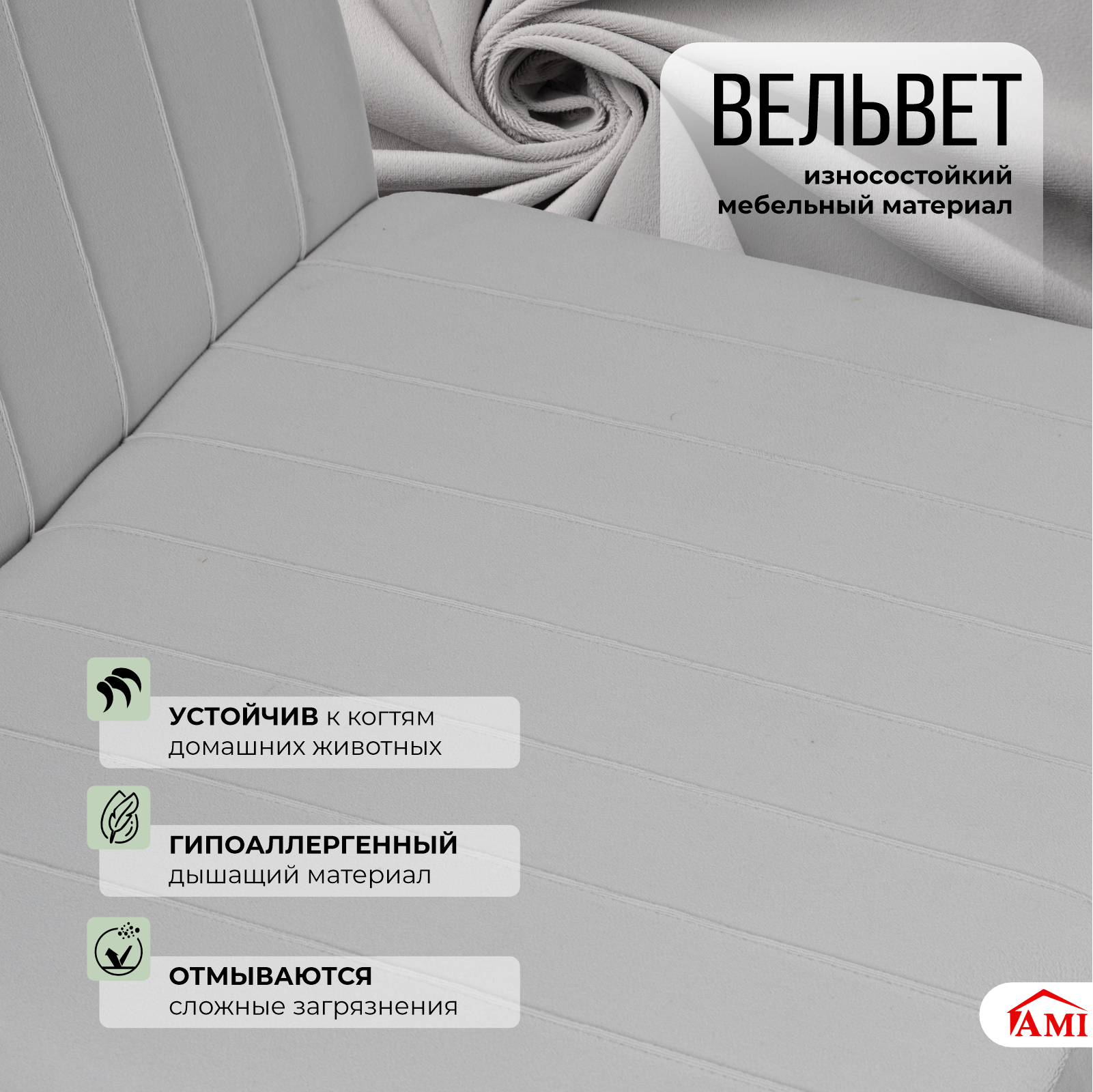 Стул кресло для кухни дома и офиса светло-серый, из велюра, 63х56х72 см, до 120 кг