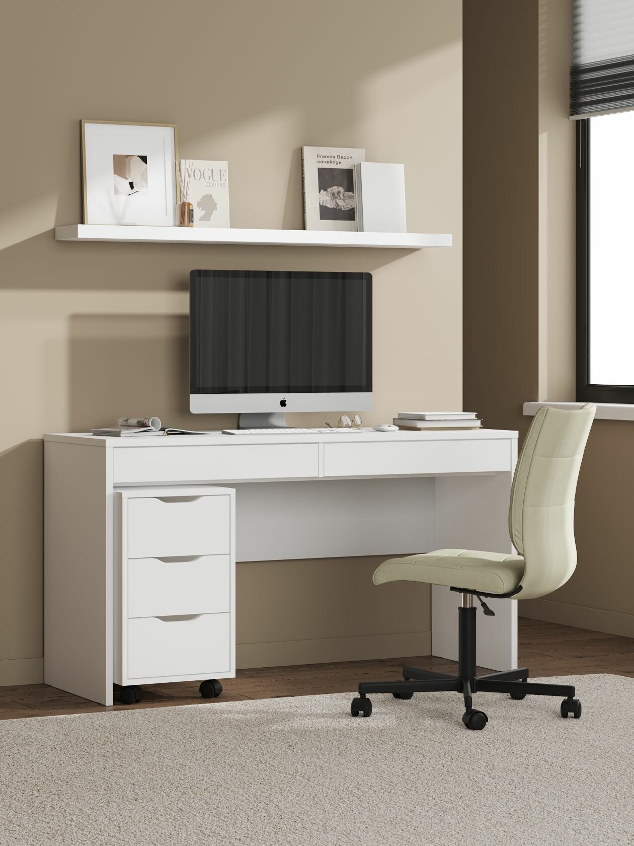 Офисное кресло Саймон на колесиках, с регулировкой по высоте, без подлокотников, 43х43х101 см, Молочный, велюр