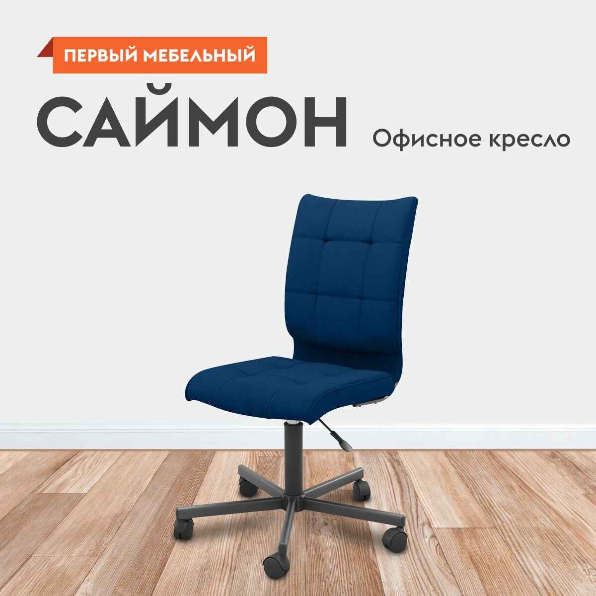 Купить Офисное кресло Саймон на колесиках, с регулировкой по высоте, без подлокотников, для офиса, для школы, для коворкинга 43х43х101 см, Синий, велюр