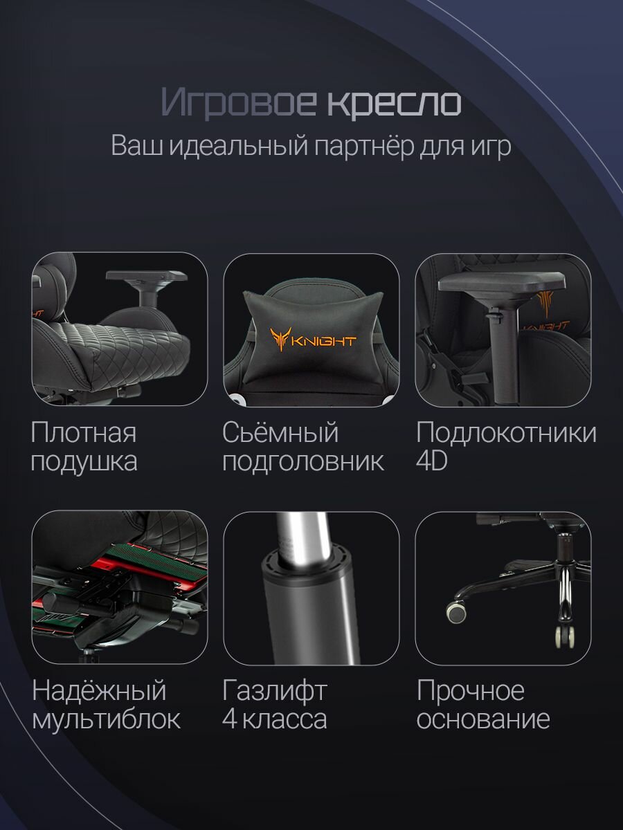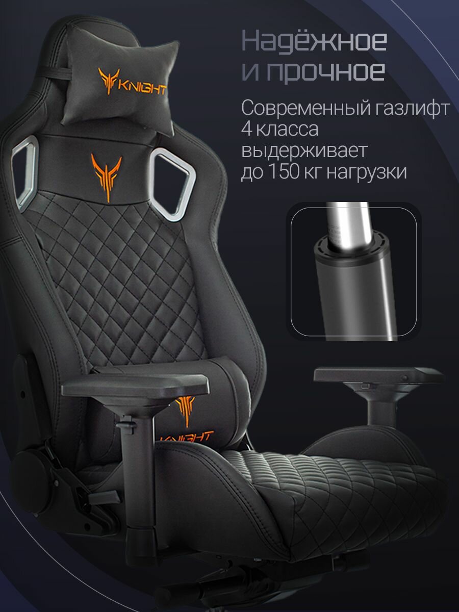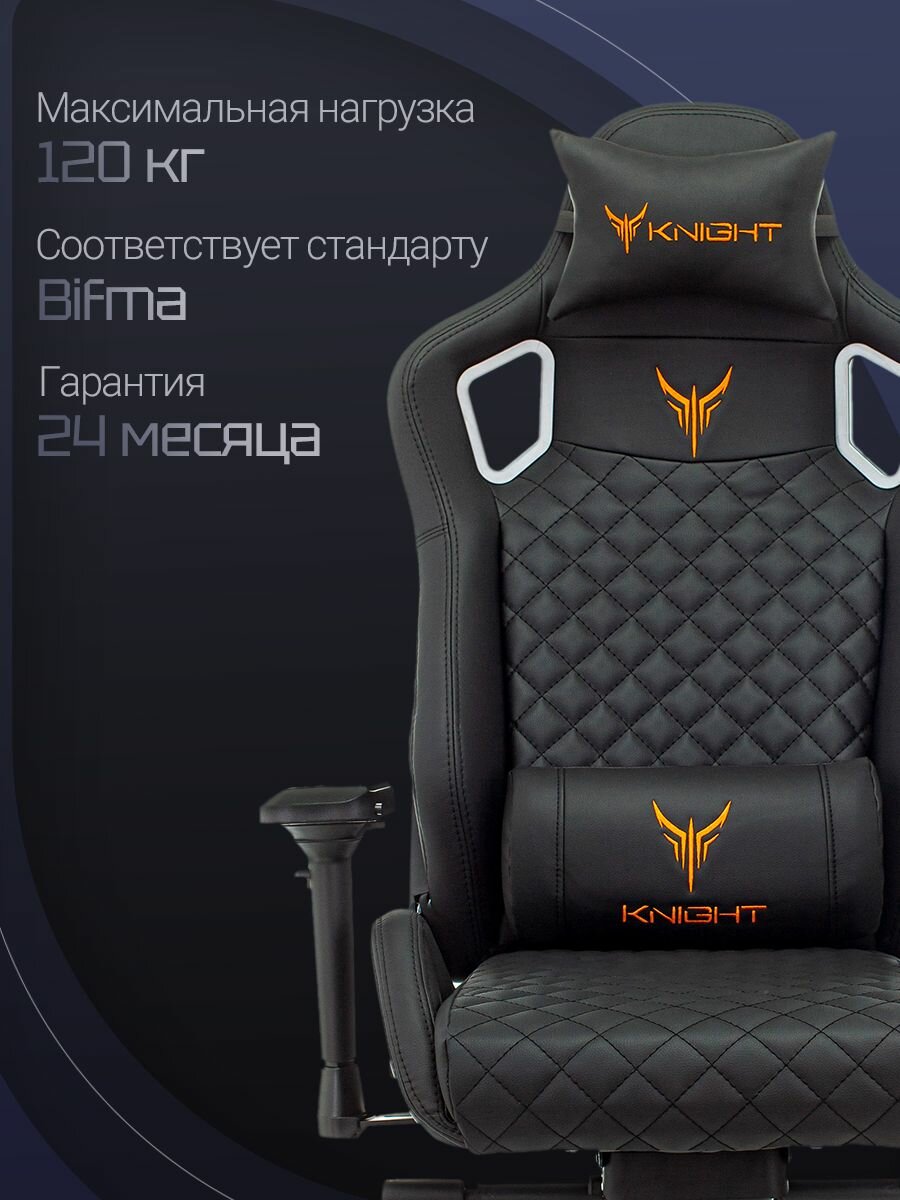 Кресло игровое KNIGHT TITAN черный, ромбик, эко. кожа, с подголовником, крестовина металл интересное: