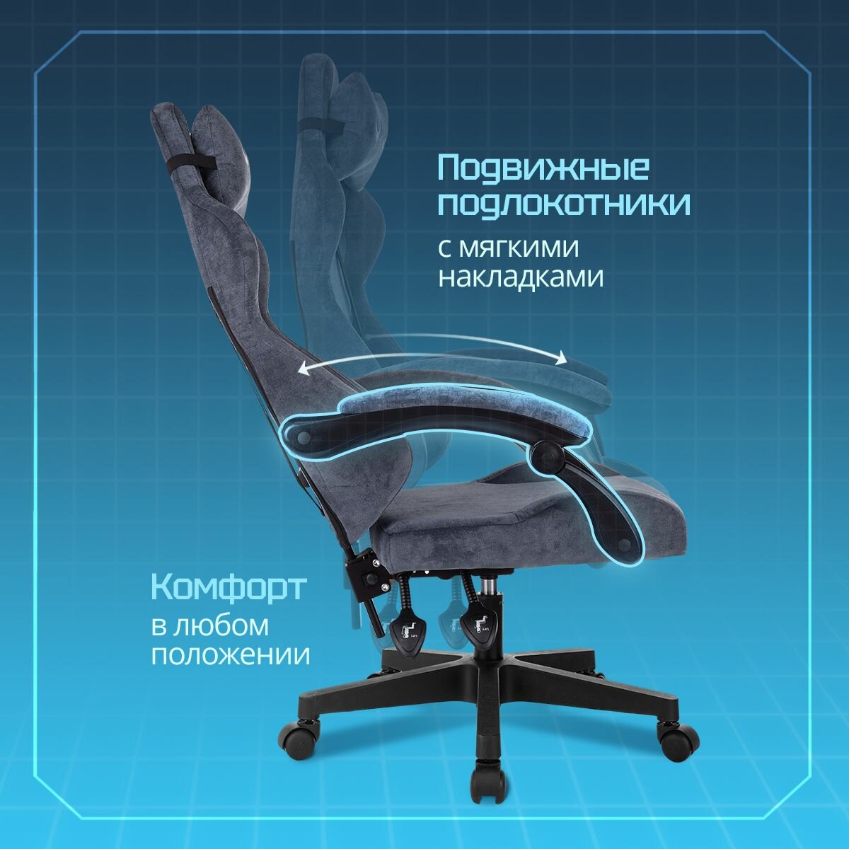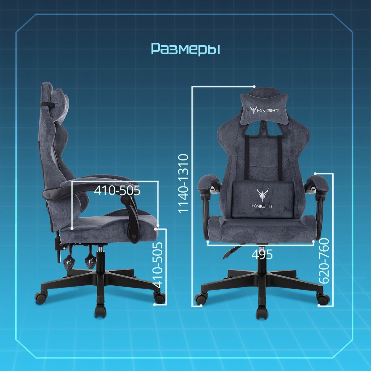 Кресло игровое с подсветкой KNIGHT TERMINATOR RGB черный, ткань, подушки, подвижные подлокотники, поясничный упор