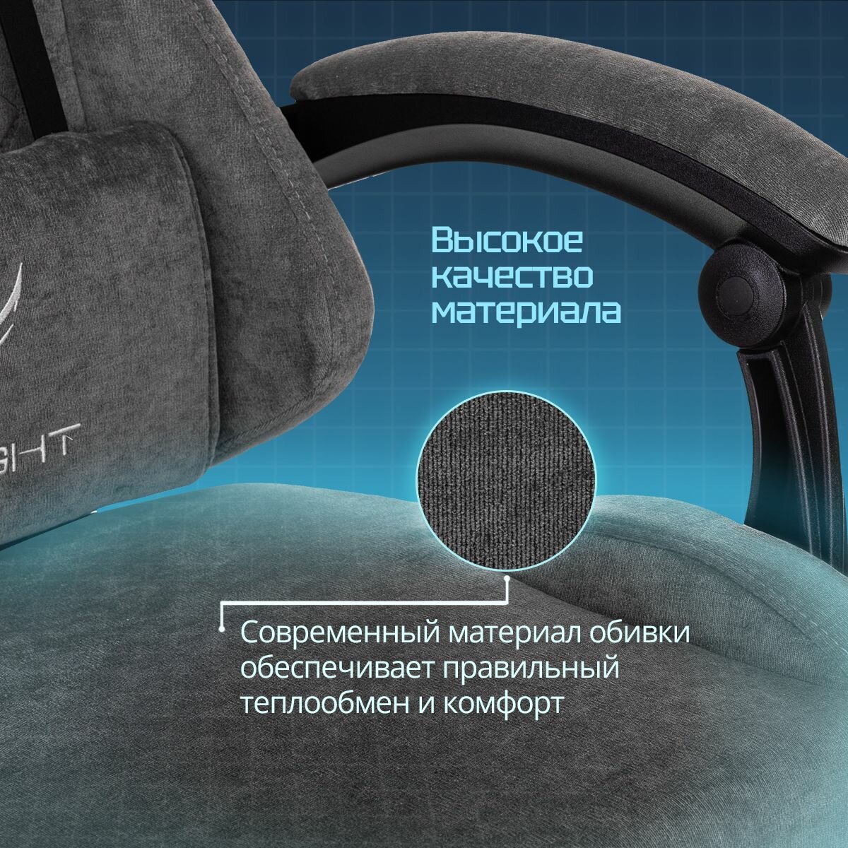 Кресло игровое с подсветкой KNIGHT TERMINATOR RGB черный, ткань, подушки, подвижные подлокотники, поясничный упор