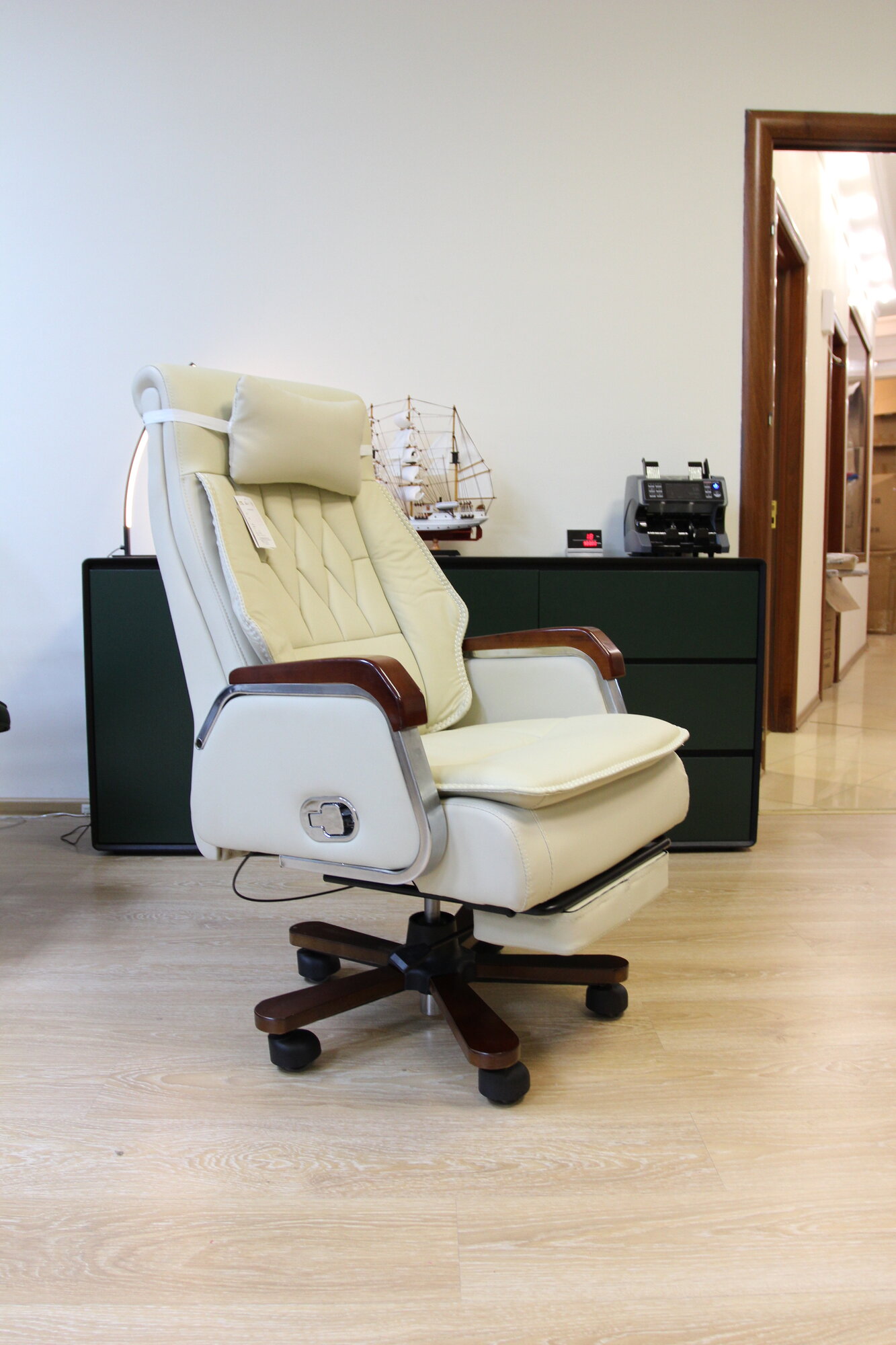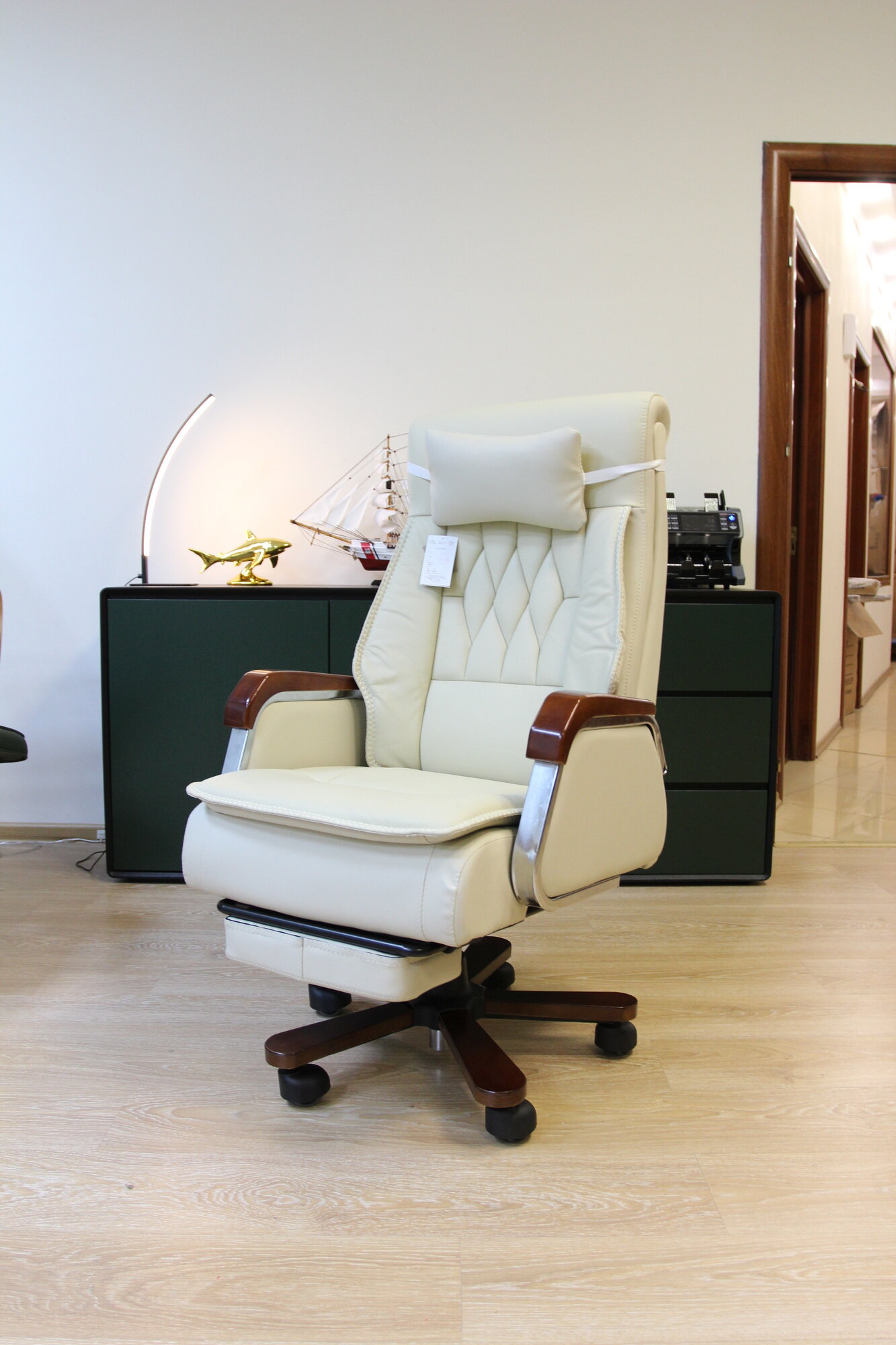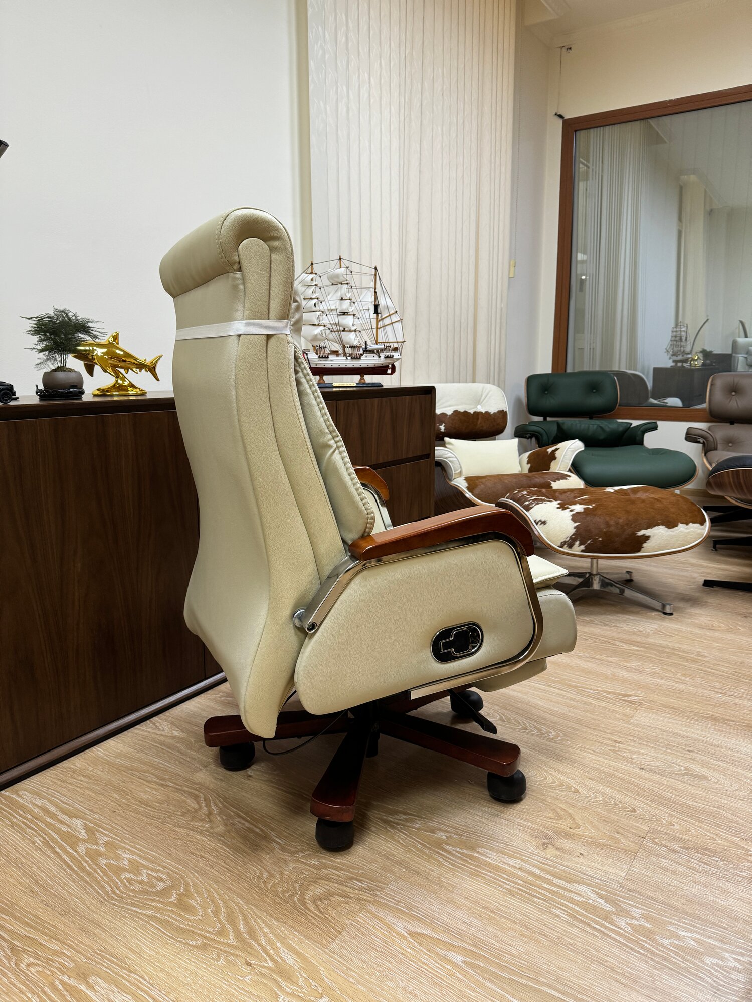 Кресло Shark House Barroco, с газлифтом и механизмом качания, обивка из кожи и экокожи, цвет слоновая кость интересное: