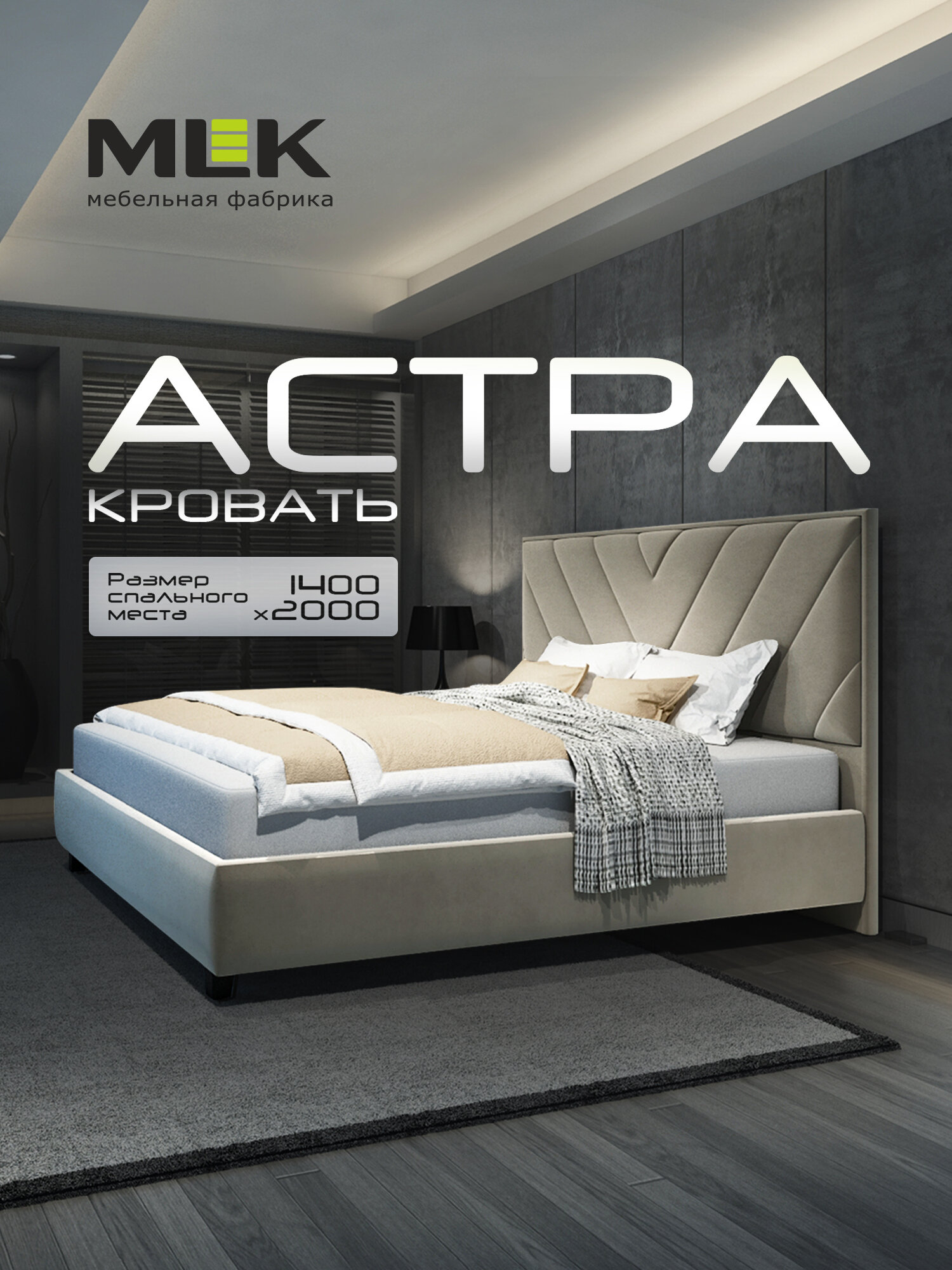 СохранитьКровать MLK Астра 1400 БЛ 03, двуспальная, с мягким изголовьем. интересное: