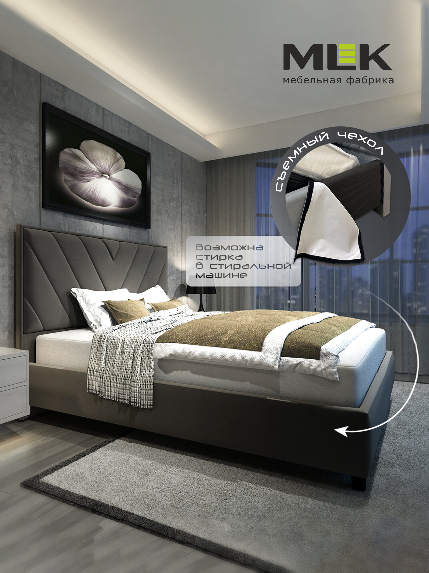 Кровать MLK Астра 1600 нео 25, двуспальная, с мягким изголовьем.