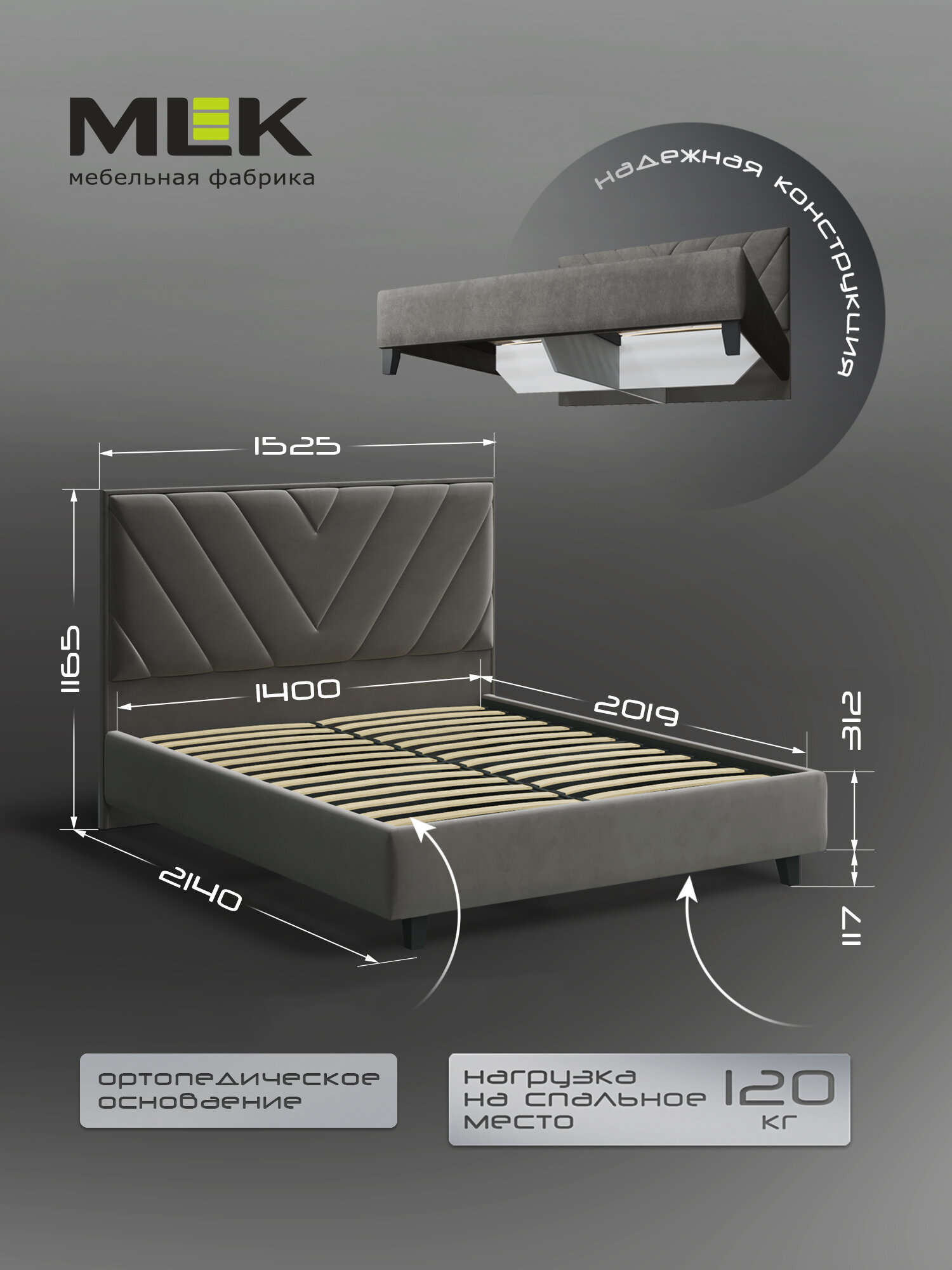 Кровать MLK Астра 1400 нео 25, двуспальная, с мягким изголовьем.