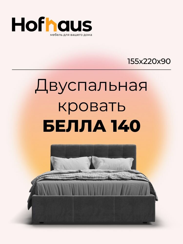 Двуспальная кровать Белла с подъемным механизмом, рогожка Malmo серый, 140х200 см