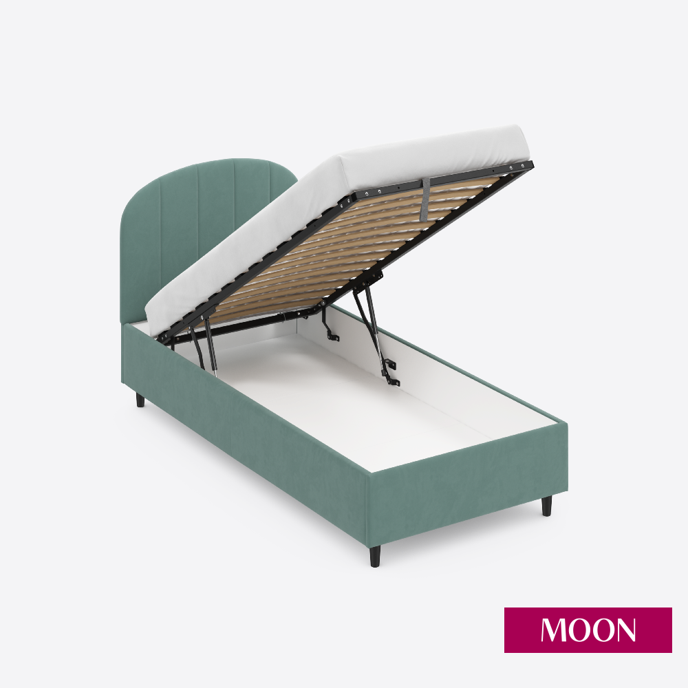 СохранитьКровать односпальная с подъемным механизмом на ножках, MOON FAMILY 1262, размер 90х200 см, велюр светло-зеленый. Ортопедическое основание в комплекте интересное:
