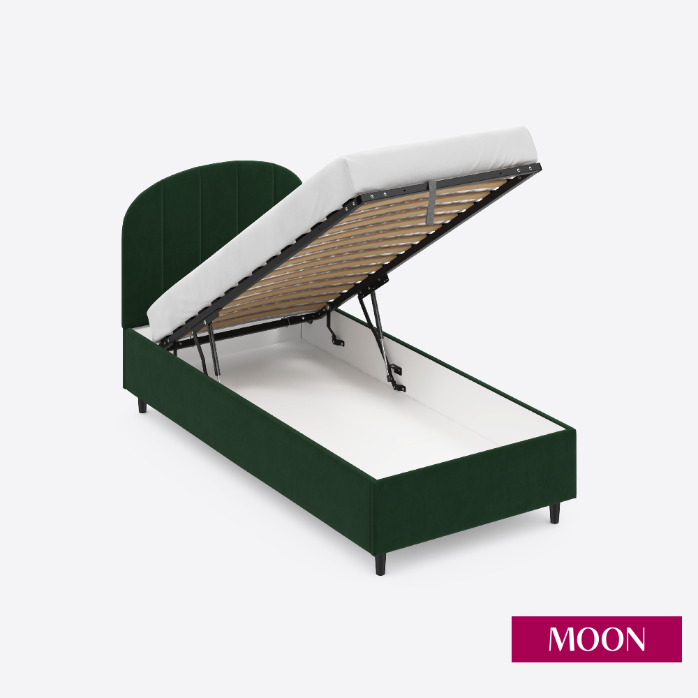 СохранитьКровать односпальная с подъемным механизмом на ножках, MOON FAMILY 1262, размер 90х200 см, велюр зеленый. Ортопедическое основание в комплекте интересное: