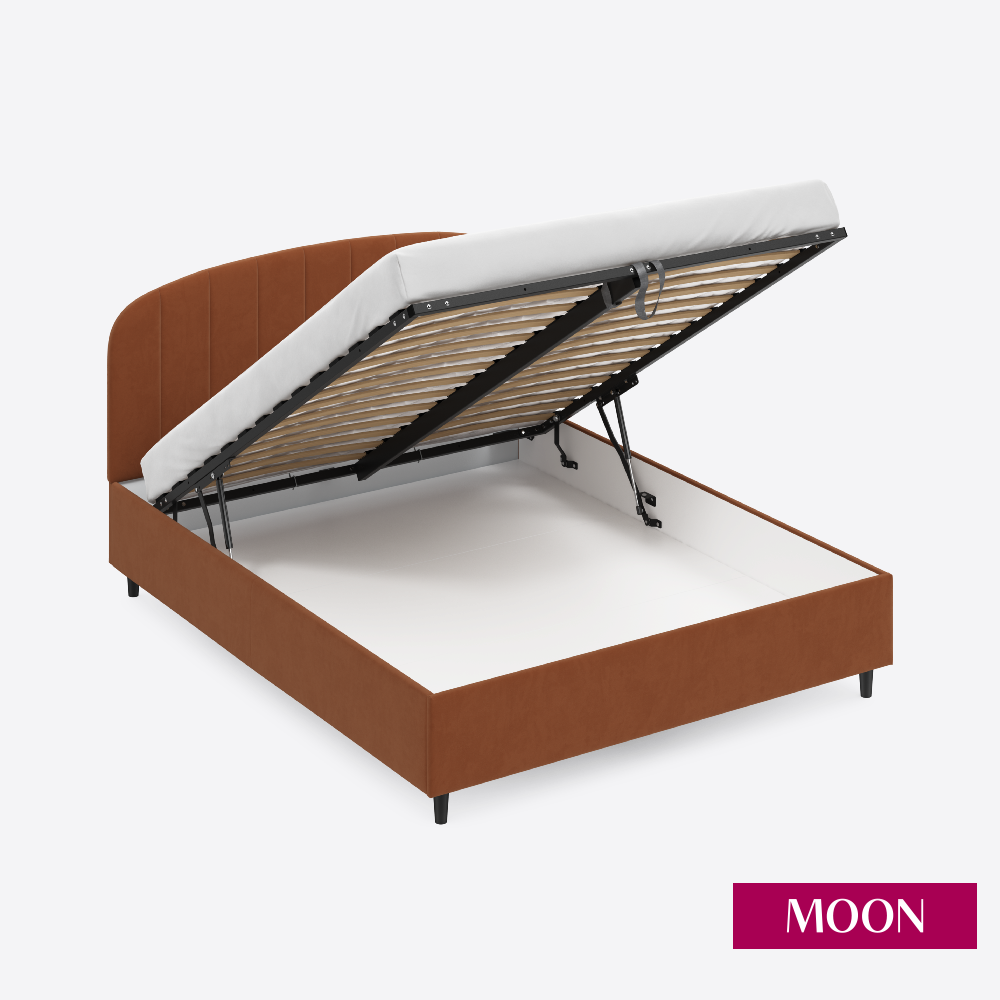 Кровать двуспальная с подъемным механизмом на ножках, MOON FAMILY 1262, размер 140х200 см, велюр оранжевый. Ортопедическое основание в комплекте