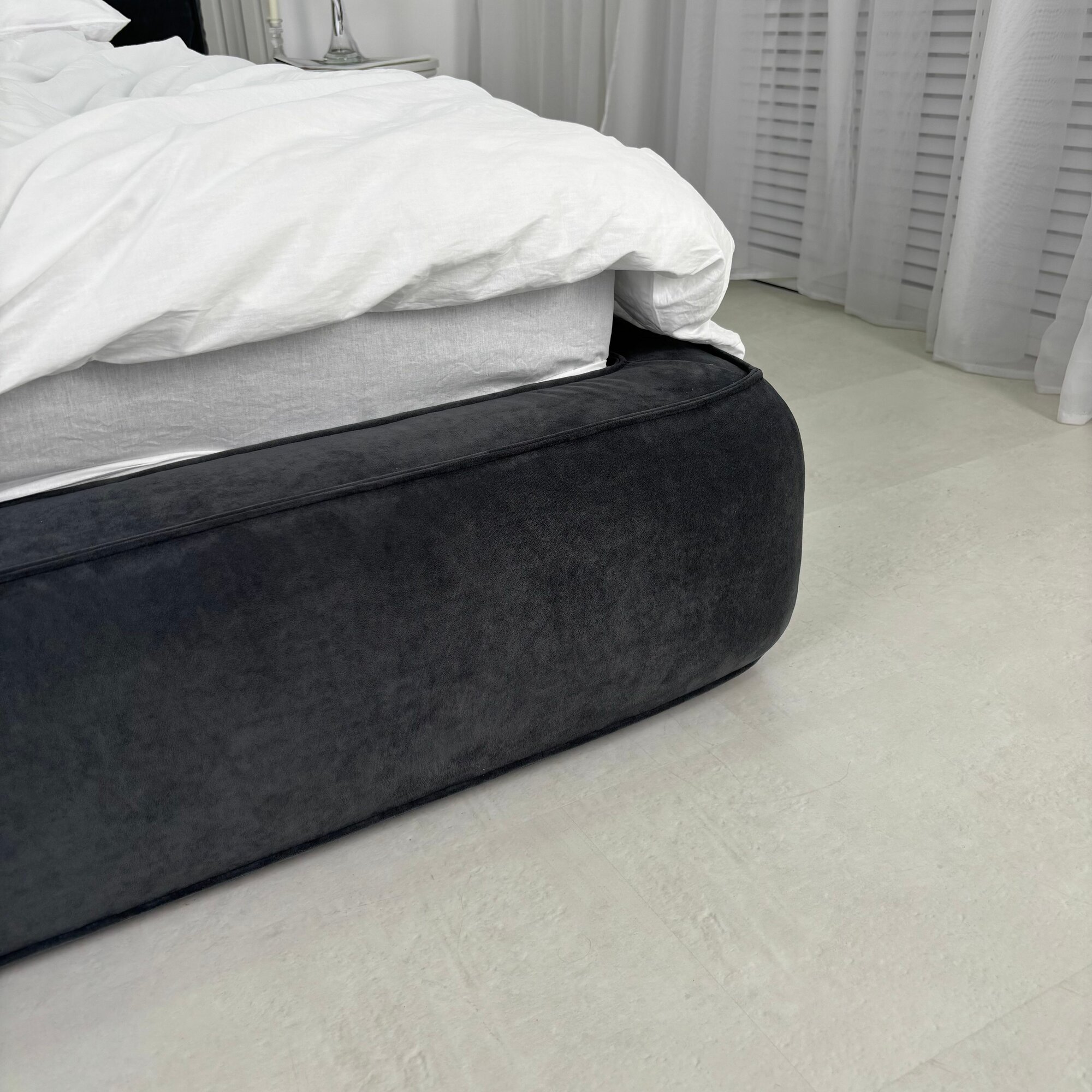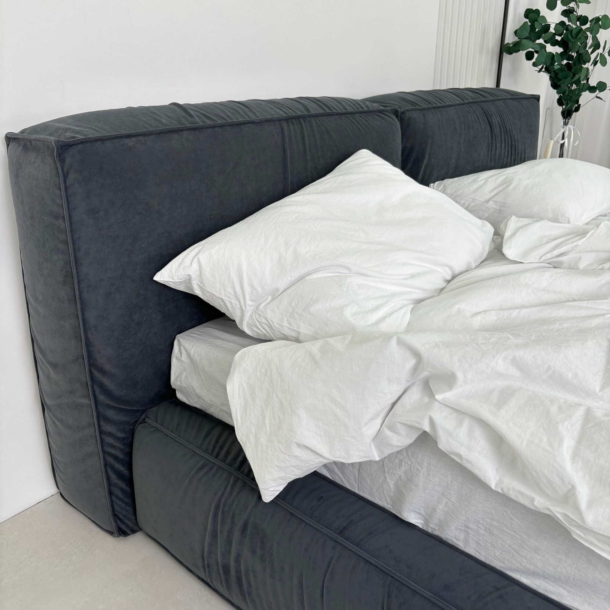 Мягкая кровать Субаку/Subaku 180х200 двуспальная, с ящиками и подъемным механизмом, графитовая (черно-серая)