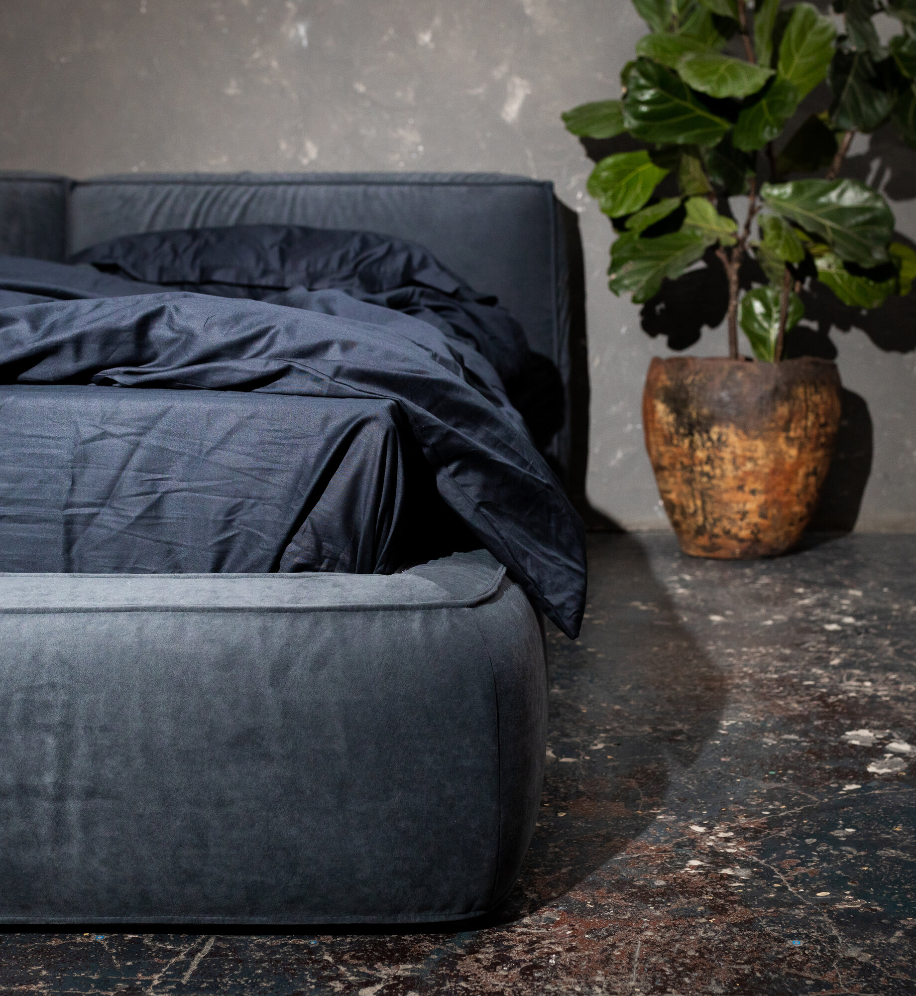 Мягкая кровать Субаку/Subaku 200х200 двуспальная, с ящиками и подъемным механизмом, темно-серая