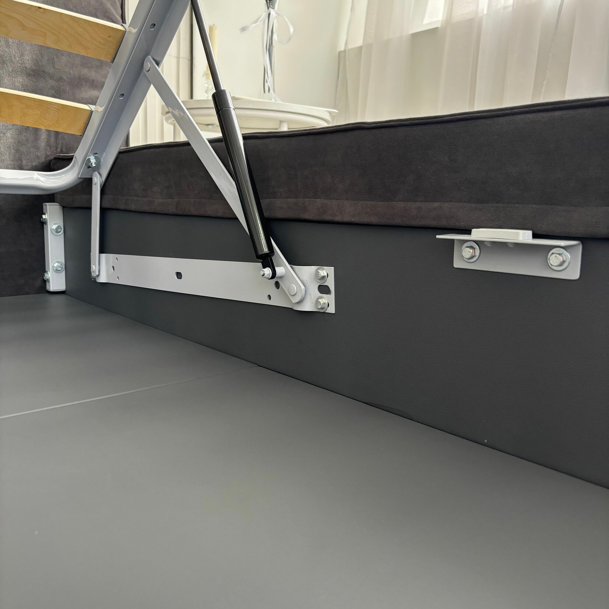 Кровать двуспальная Субаку/Subaku 180х200 с подъемным механизмом и ящиками для белья, темно-серая